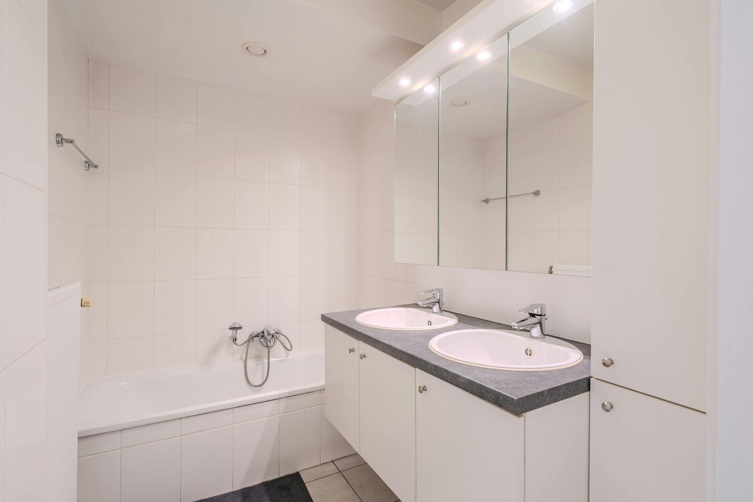 - badkamer met ligbad, dubbele lavabo, spiegelkast en handdoekradiator