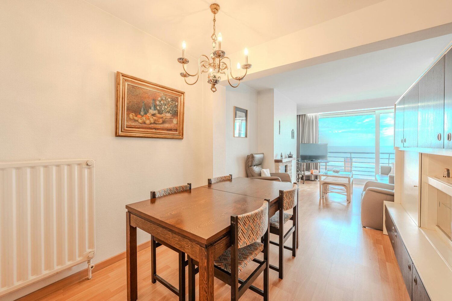 Vanuit de woonkamer en het terras geniet u van een magnifiek zeezicht en zicht op het nieuwe casino. Naast een inkomhal met vestiairekast en keuken, biedt dit appartement twee ruime slaapkamers (één met terras), een badkamer met bad en een afzonderlijk gastentoilet. Dit op te frissen appartement biedt veel potentieel en is een ideaal tweede verblijf aan de kust! Indeling: - Inkomhall - Woonkamer met toegang tot het terras en een prachtig uitzicht op zee! - Keuken - Badkamer met enkele lavabo en bad - Gastentoilet - Slaapkamer 1 met terras - Slaapkamer 2 Troeven: - Prachtig zicht op zee en het nieuwe casino - Appartement met veel potentieel! - Ideaal vakantieappartement aan zee - Twee mooie slaapkamers - Centrale ligging - Situeert zich op wandelafstand van openbaar vervoer, winkels en horeca - Nieuwe ramen met hoogrendementsbeglazing Interesse in dit twee slaapkamer appartement op de Zeedijk te Middelkerke? Contacteer ons vandaag nog voor een plaatsbezoek!