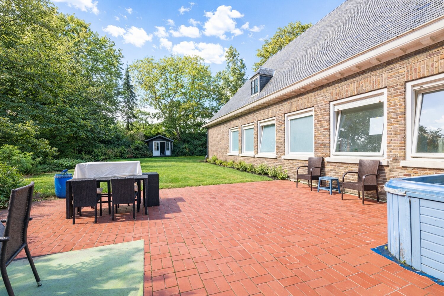 Deze villa was een voormalige notaris woning met kantoor. Het gelijkvloers bestaat uit een royale inkomhal, vestiaire en toilet, een grote woonkamer, een ingerichte keuken, 2 polyvalente kamers, een wasberging, fietsplaats, een grote kantoor ruimte en een dubbele garage. Op het eerste verdiep zijn er 8 slaapkamers en 2 badkamers voorzien. Ook de zolderruimte voorziet tal van plaats en kan nog afgewerkt worden met tal van doeleinden. Bovendien is de woning onderkelderd en geniet deze van een zuidwest gerichte tuin.
