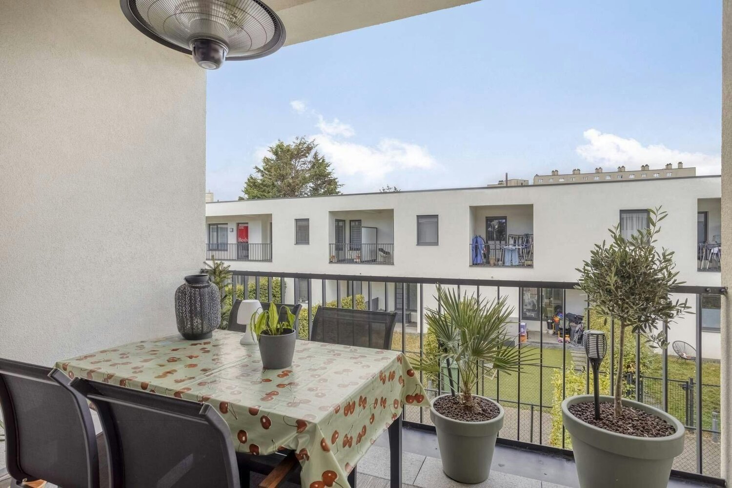 - West-gericht terras (ca. 8,4m²) met zicht op het binnengebied