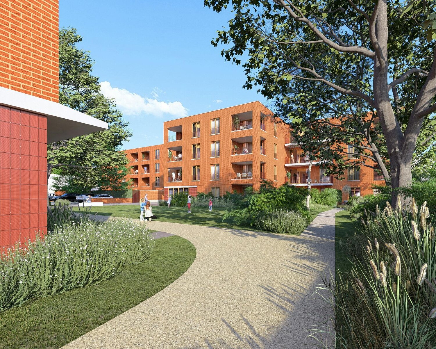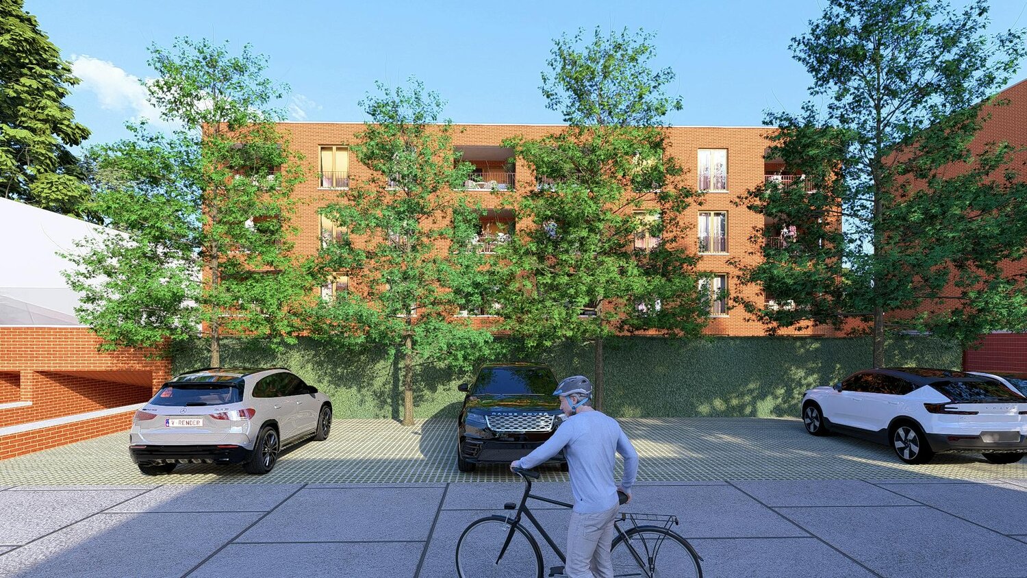 In totaal 31 appartementen en één winkel/kantoorruimte, elk ontworpen voor maximaal comfort. Alle appartementen beschikken over ruime terrassen die uitgeven of zicht bieden op het groene, rustige binnengebied Er is een keuze tot gelijkvloersappartementen met tuin, appartementen met twee of zelfs drie slaapkamers, verdeeld over drie verdiepingen met lift. Ondergrondse parkings en gemeenschappelijke fietsenberging!