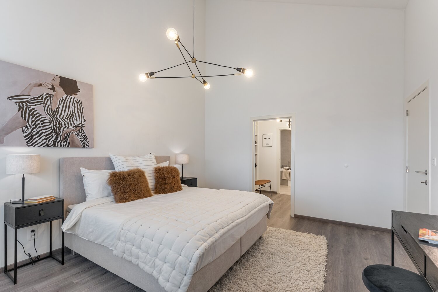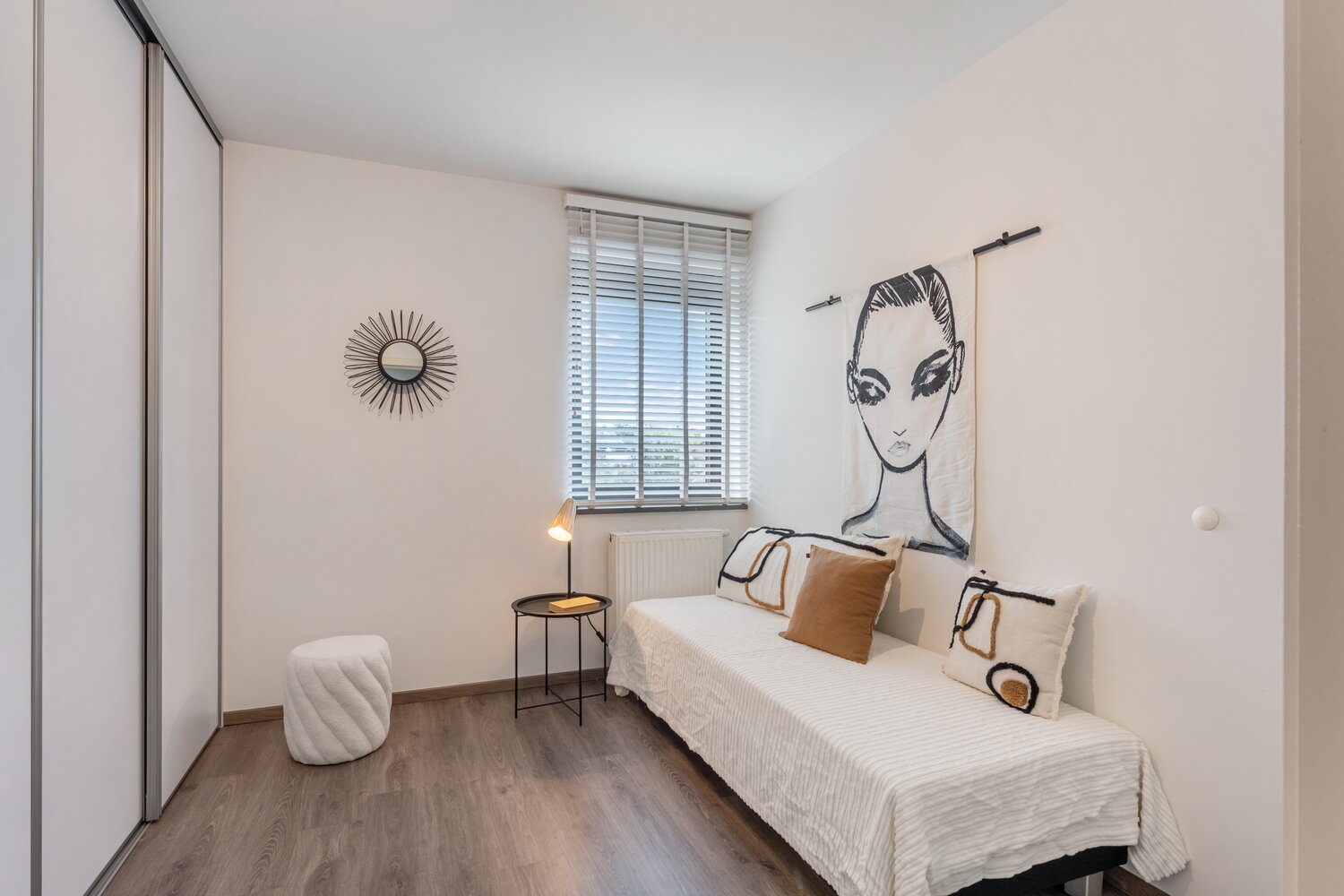 - Keramische tegelvloer doorheen het volledige appartement en laminaatvloer op de slaapkamers