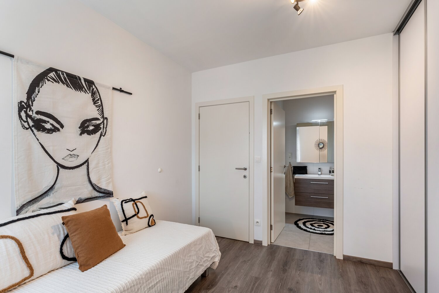- Tweede slaapkamer met vaste kastenwand en met eigen badkamer voorzien van douche en wastafel