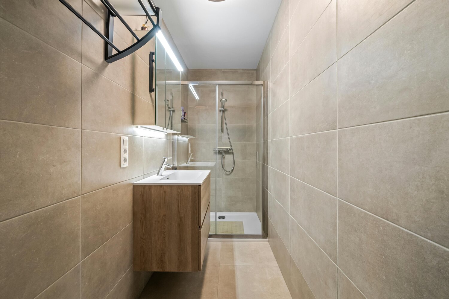 - badkamer met inloopdouche en lavabomeubel