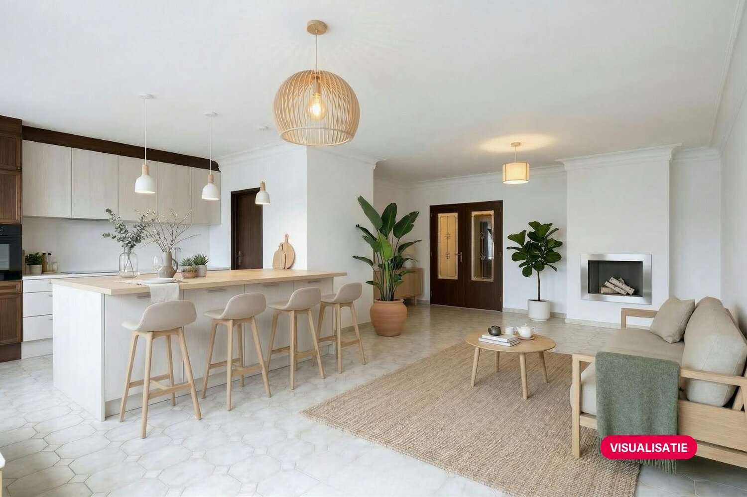 - gedeeltelijk uitgeruste open keuken