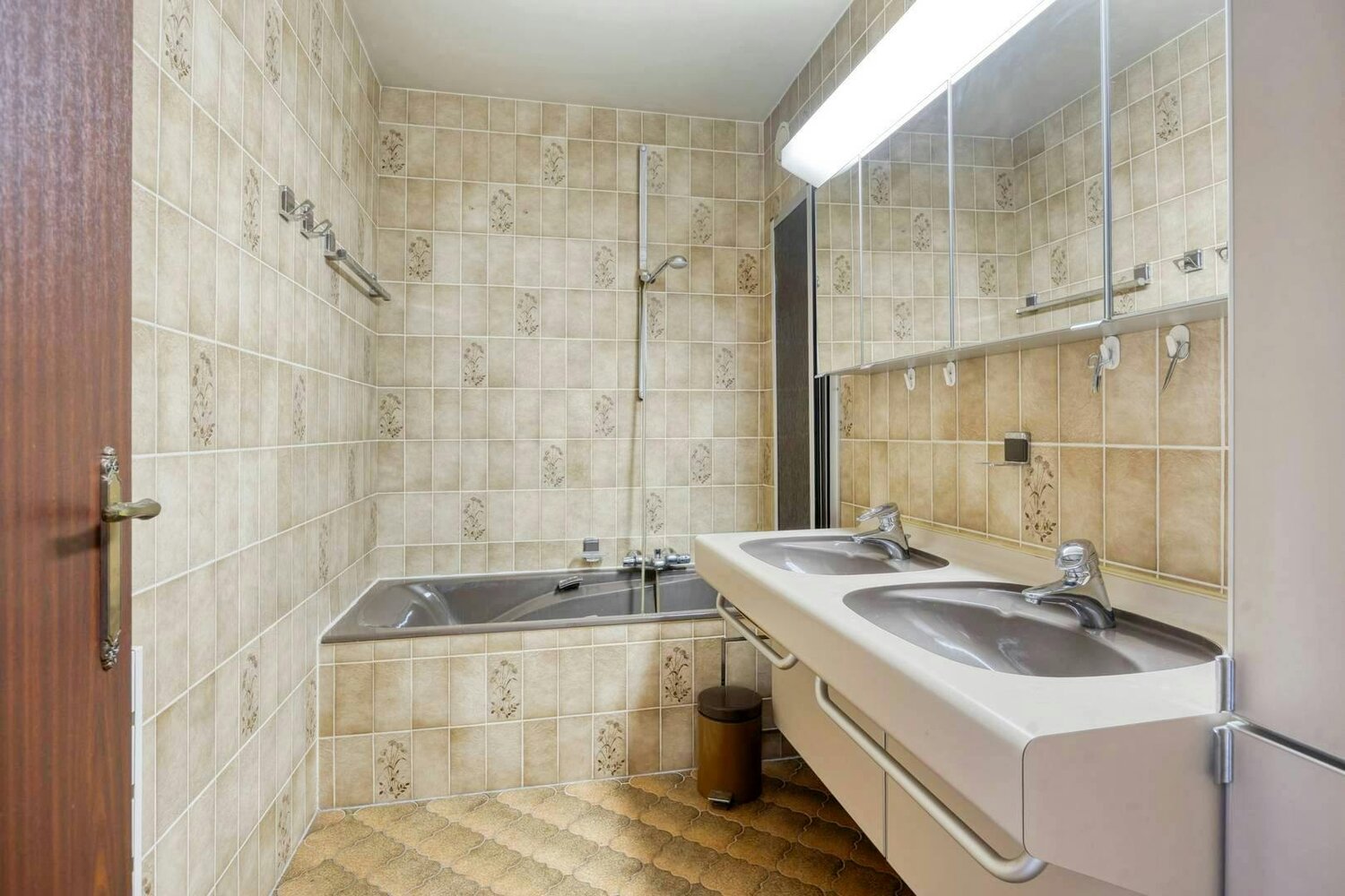 - badkamer voorzien van een dubbele lavabo en bad (ca.5m²)