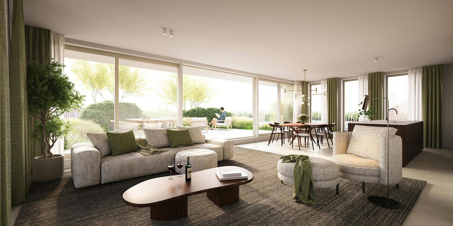 De grote raampartijen in de open leefruimte zorgen voor een overvloed aan natuurlijk licht en een naadloze verbinding tussen binnen en buiten. De BEN-status (bijna-energieneutraal) maakt deze woning niet alleen luxueus, maar ook duurzaam en energiezuinig.