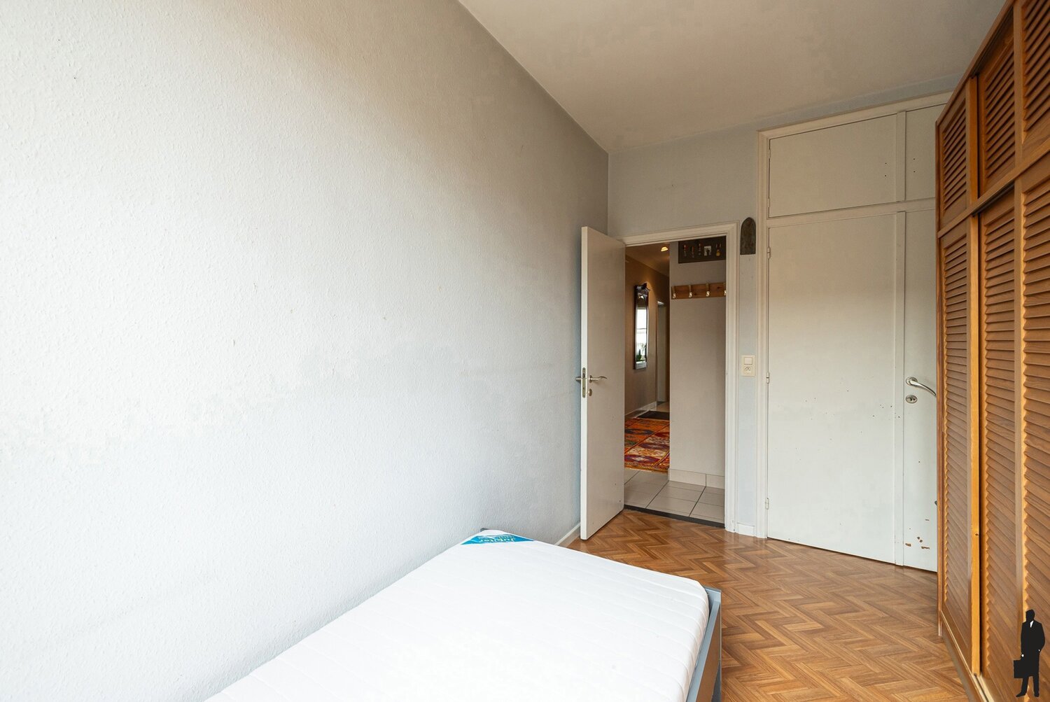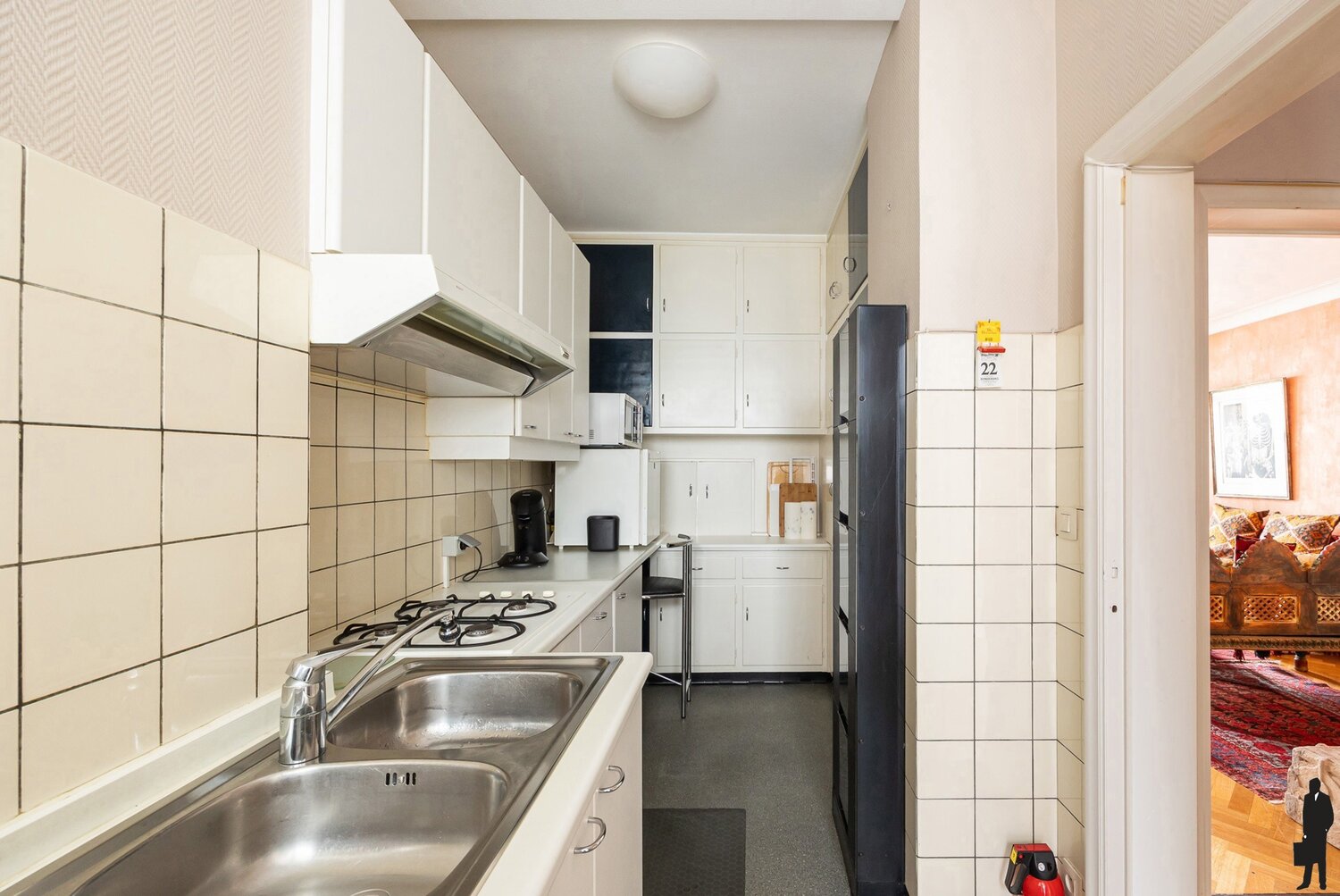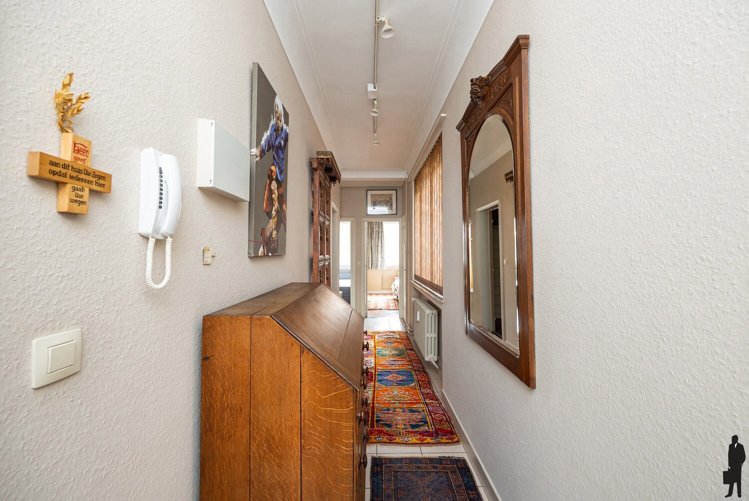 De authentieke parketvloeren en aangename lichtinval dragen bij tot de charme van deze riante leefruimte.