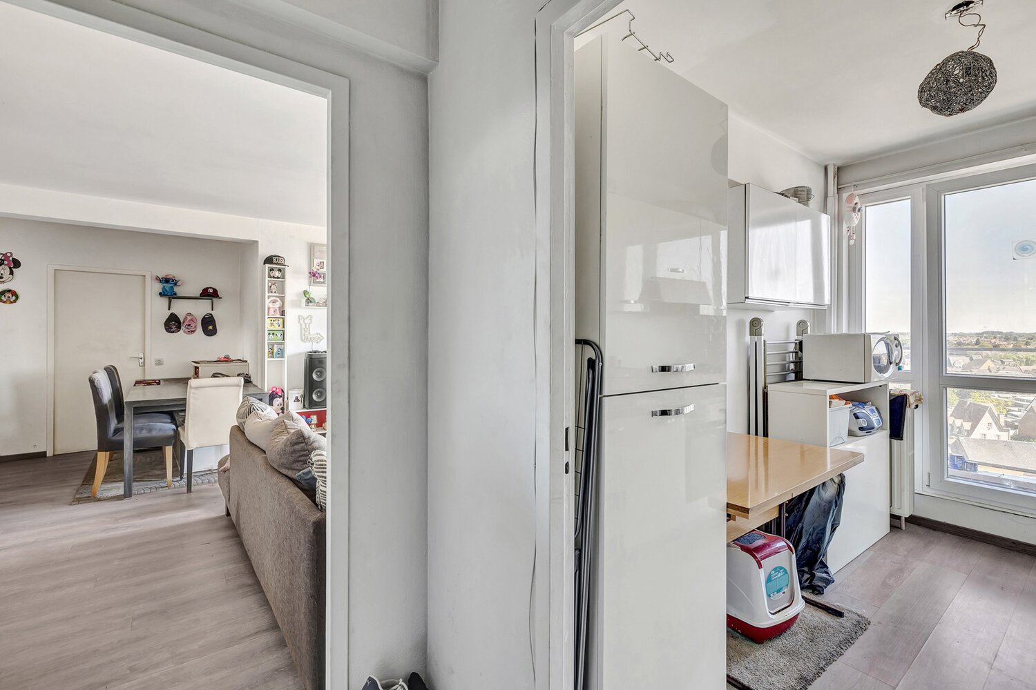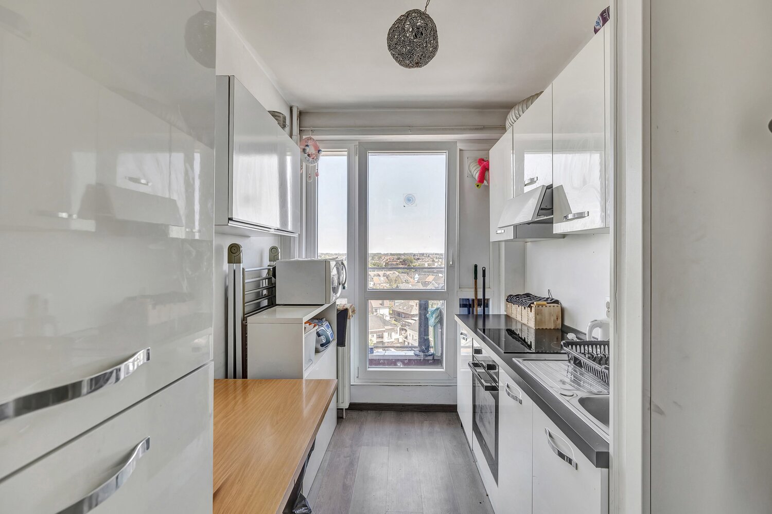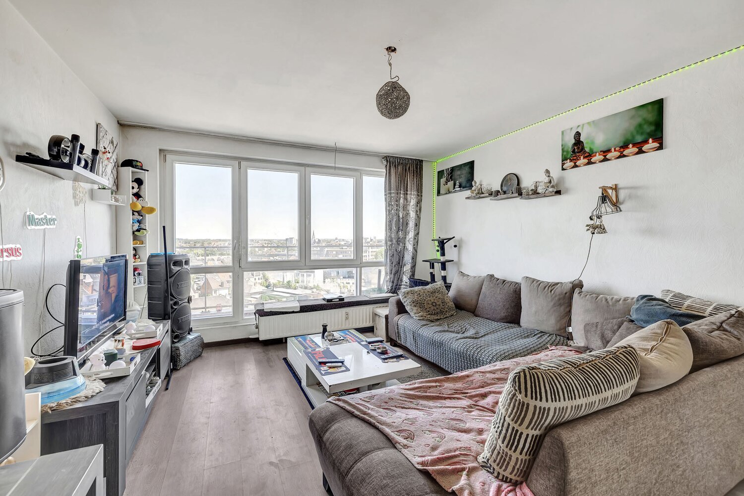 Voor meer info of een bezoek, bel 053 59 49 32 - Gelegen aan de stadsrand van Aalst vinden we dit tweeslaapkamer appartement. De oprit van de autostrade, bushalte, het centrum van Aalst, scholen en supermarkten bevinden zich in de korte nabijheid. Ook het rustgevende park Ter Linden geeft extra voordelen om te genieten van de omgeving en de rust. Gelegen op de twaalfde verdieping met adembenemend zicht vinden we dit tweeslaapkamer appartement. Het appartement beschikt over een gerenoveerde keuken, leefruimte, apart toilet, badkamer en twee ruime slaapkamers. Verder beschikt het appartement nog over een ruime berging in de gemeenschappelijke kelder. Gratis privé parking vóór het appartementsgebouw. Het appartement is momenteel verhuurd met een goed rendement, perfect voor investeerders! (eventuele opzeg tot 6 maanden na akte.) Het appartement heeft een EPC label B, beschikt over conforme elektriciteit en is volledig asbestveilig. EPC B - Elektriciteit conform - Lift aanwezig - Groot terras - Berging in kelder - Gemeenschappelijke fietsenstalling - Adembenemend zicht