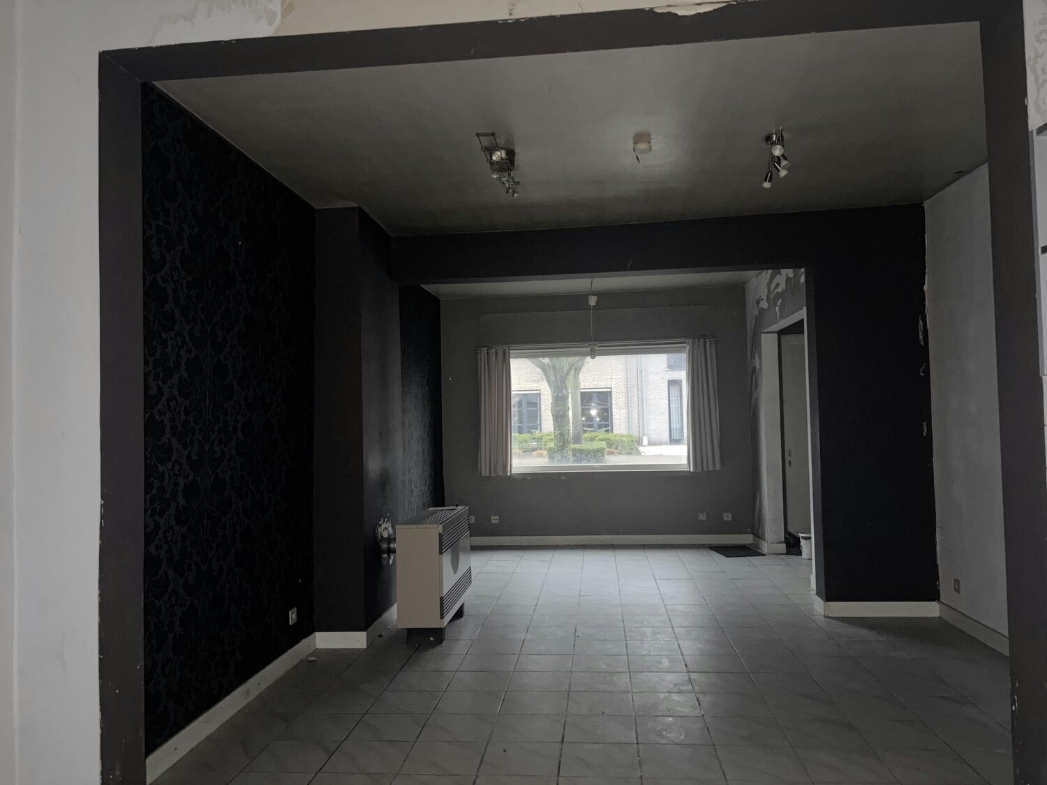 - Inkomdeur die uitgeeft op trap naar eerste verdieping en de toegang tot de leefruimte op het gelijkvloers.