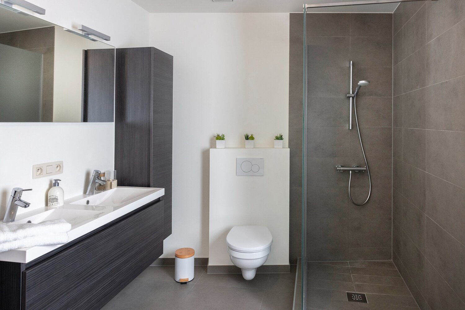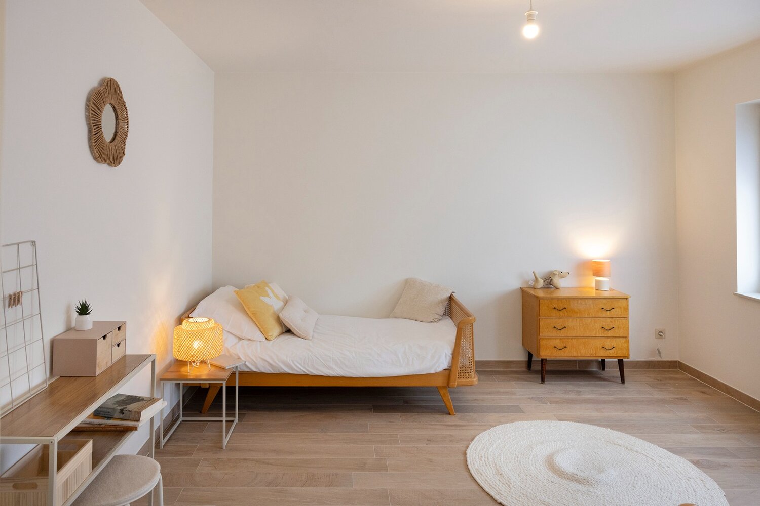 Maar los daarvan is dit ook een leuke, gezellige woonplek! Zowel de leefruimte als de keuken zijn zeer lichtrijk. Er zijn 3 ruime slaapkamers met mogelijkheid tot een vierde kamer. Verder is er een grote berging, dressing en badkamer met ligbad, douche, toilet en wastafel. Tenslotte kan je in de zon genieten op het grote terras (inderdaad, er is geen tuin te onderhouden) en is er een private autostandplaats.