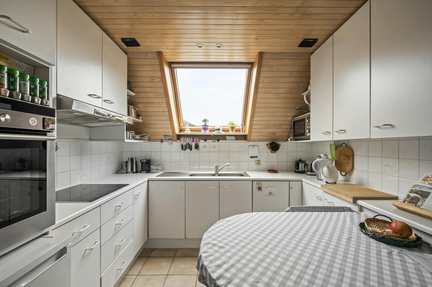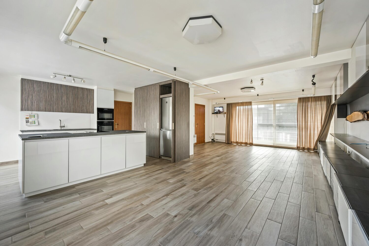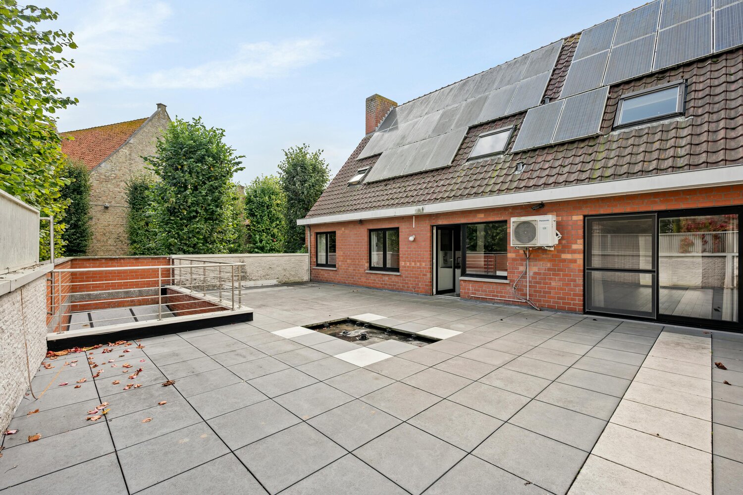 Op de eerste verdieping bevindt zich een ruim appartement van 131 m² met 3 slaapkamers, een grote leefruimte met open en moderne keuken, badkamer met ligbad/douche en een uitzonderlijk groot terras van 90 m². Extra troeven zijn de 37 zonnepanelen in combinatie met een lucht/lucht warmtepomp. Dit appartement combineert ruimte, comfort en energie-efficiëntie – een sterke meerwaarde voor verhuur of eigen bewoning.