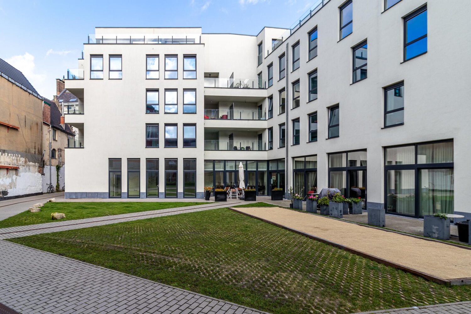De handelsruimte maakt deel uit van de residentie "Collegehof" en is gelegen in de Sint Michielsstraat te Gent.