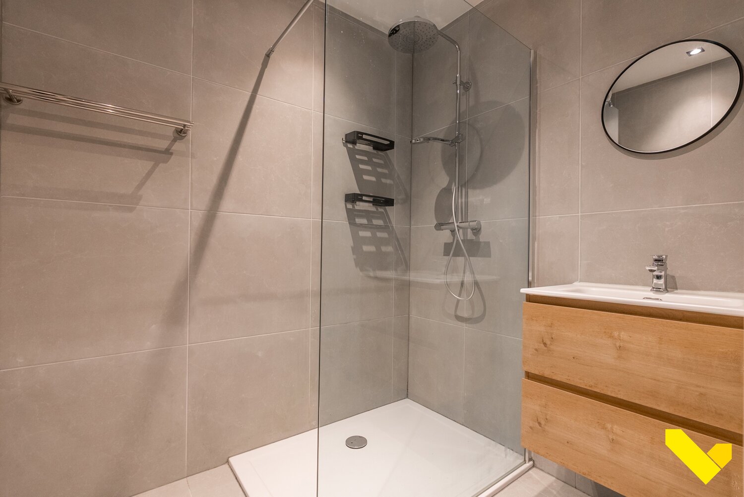 Het appartement beschikt over drie volwaardige slaapkamers, ideaal voor een gezin, hobbyruimte of bureau. De recent vernieuwde badkamer is voorzien van een stijlvolle inloopdouche en een modern lavabomeubel. Daarnaast zijn er twee aparte toiletten aanwezig.