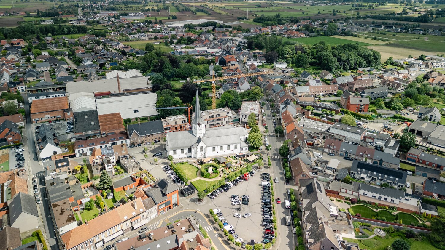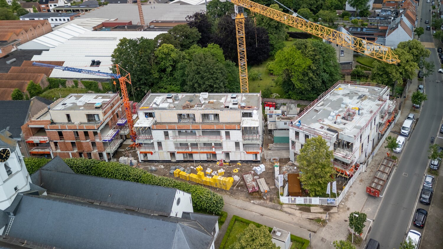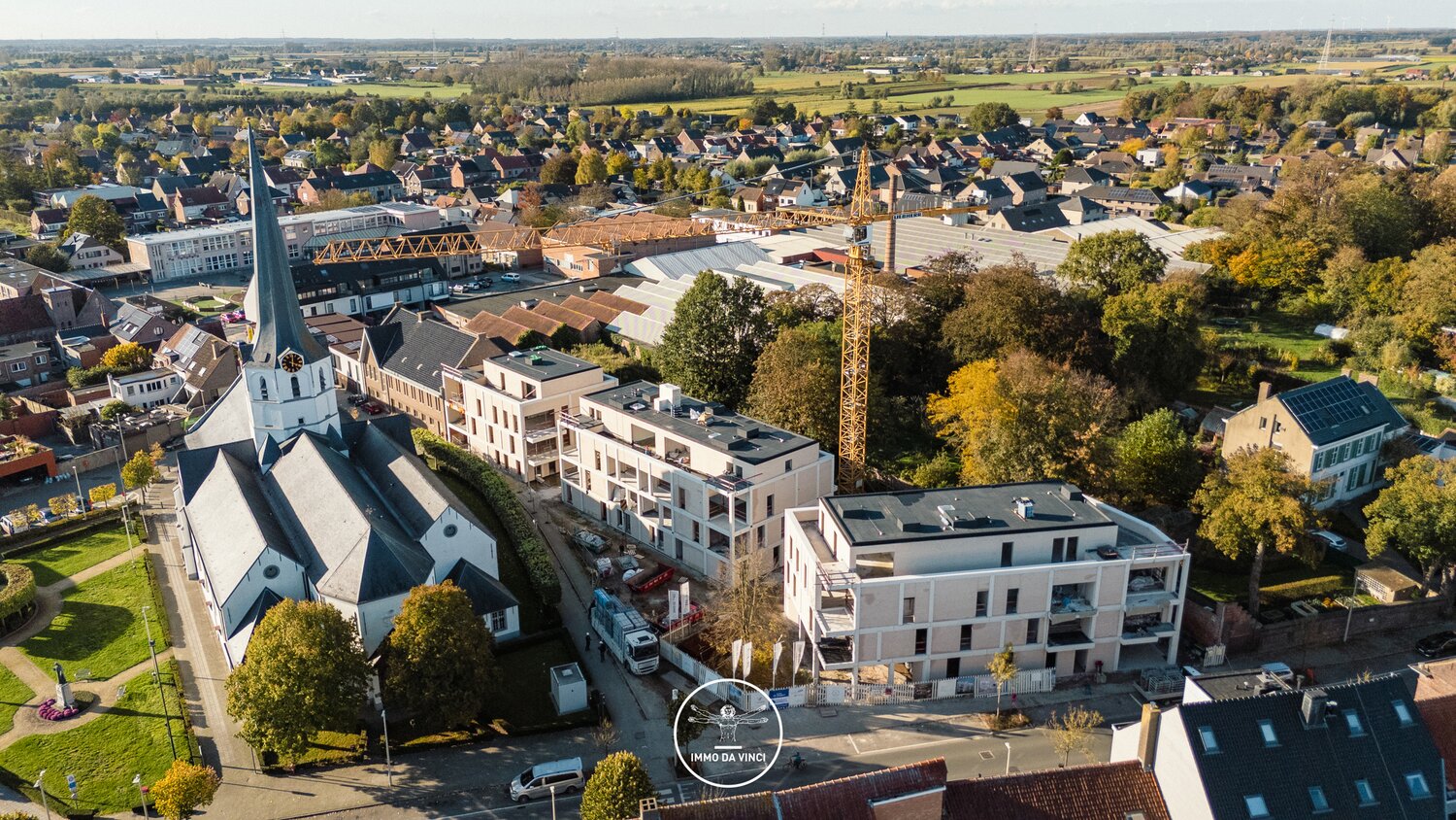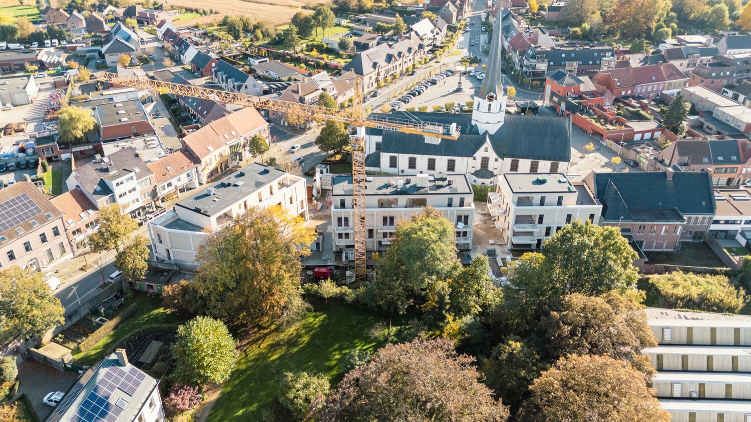Nieuwbouwproject in het centrum van Sleidinge, effectief naast de kerktoren van Sleidinge, deelgemeente van Evergem.