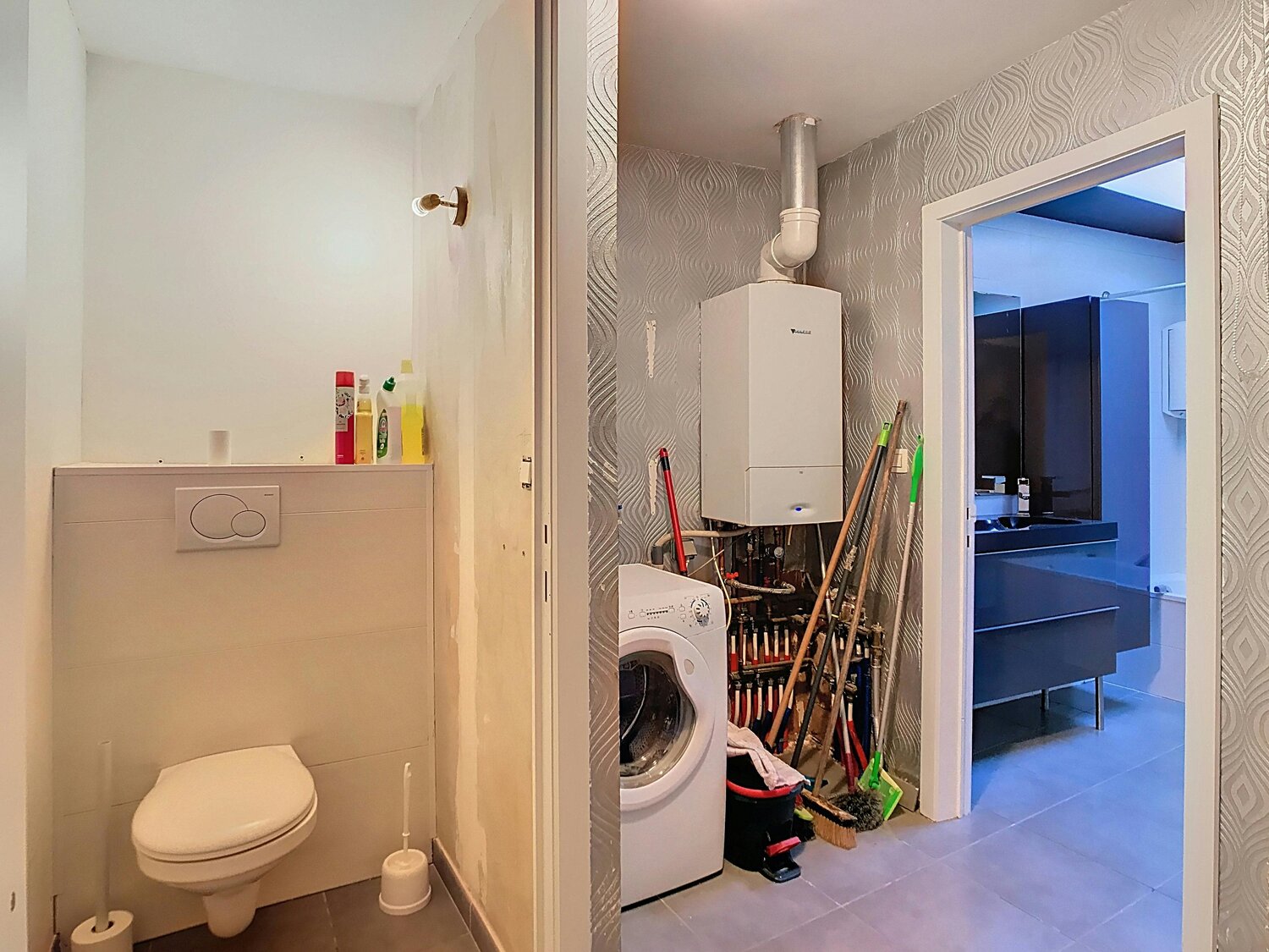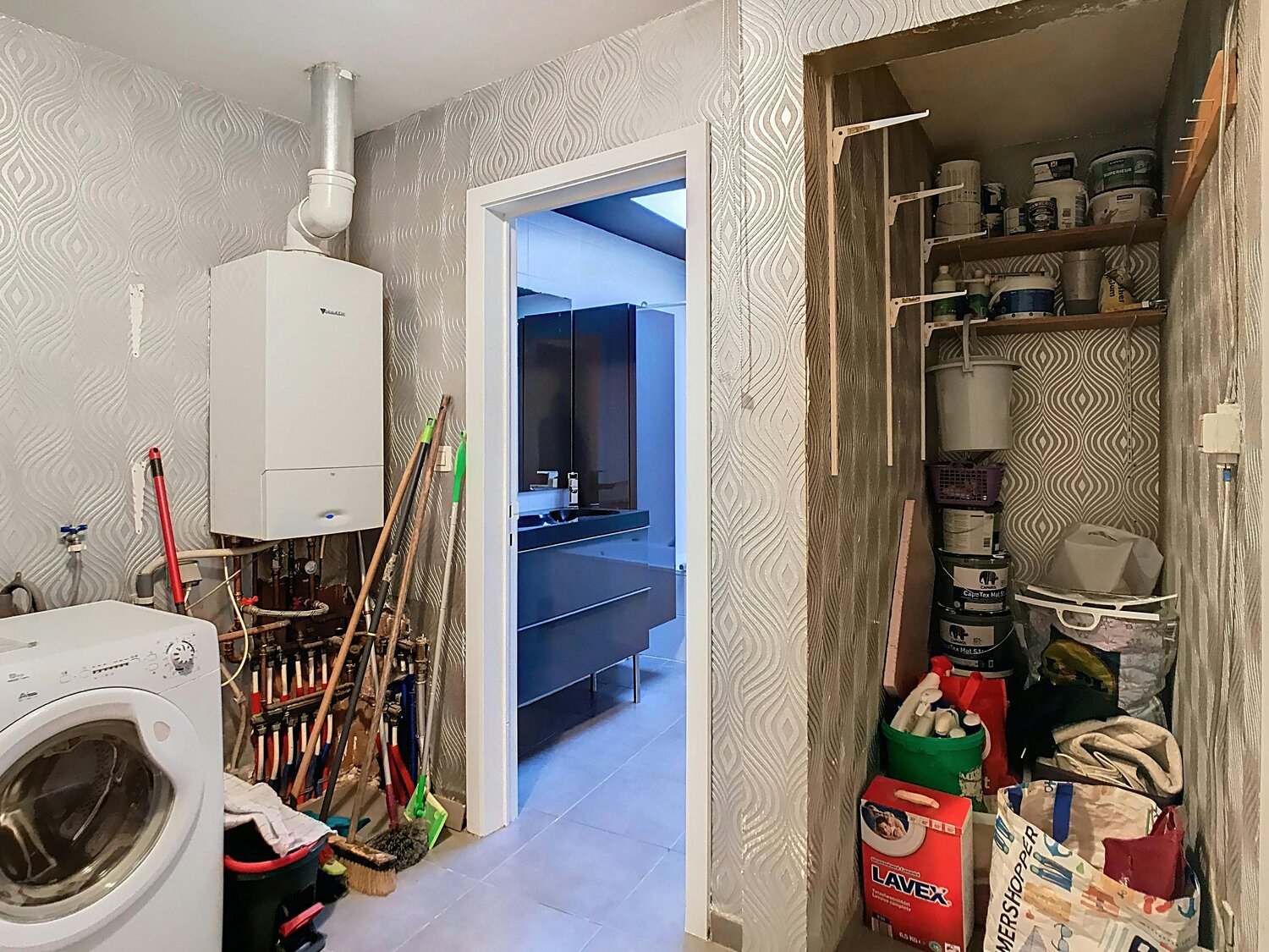 De achterbouw is bereikbaar via de inkomhal en vanuit de keuken. In de achterbouw vinden we een apart toilet en een badkamer met ligbad. Er is tevens een berging.