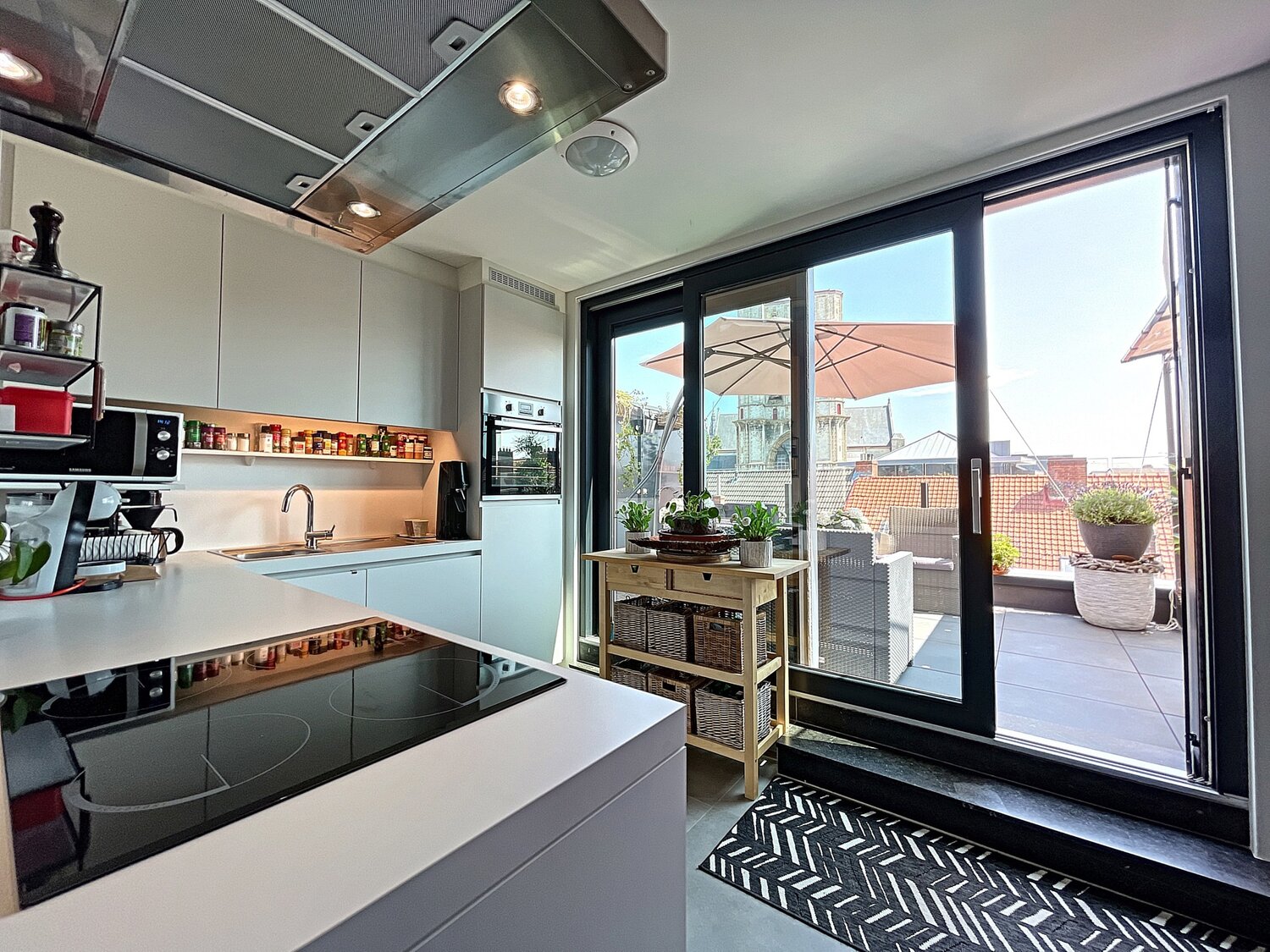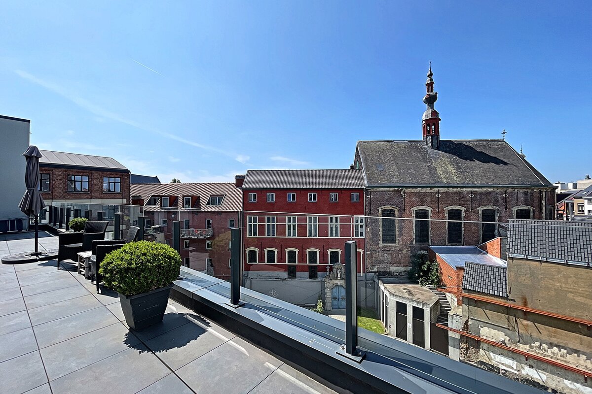 Het appartement is gelegen op het 4de verdiep. Het dak appartement met zicht op de Sint-Michielskerk bevat twee slaapkamers, twee terrassen en heeft een bewoonbare oppervlakte van 127m2.