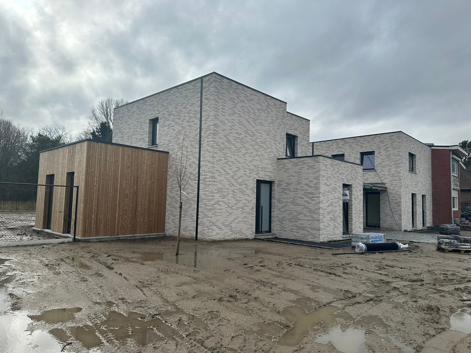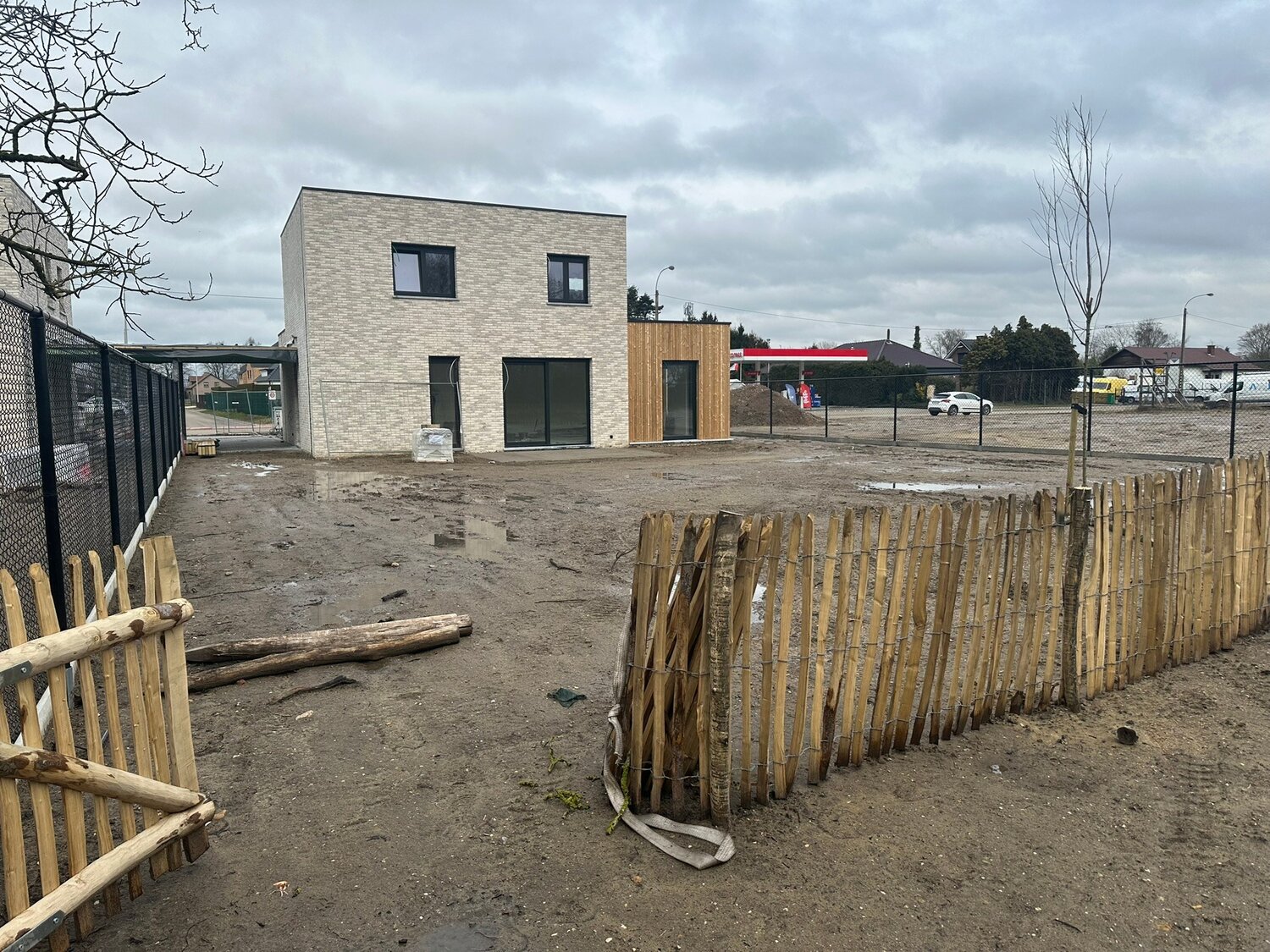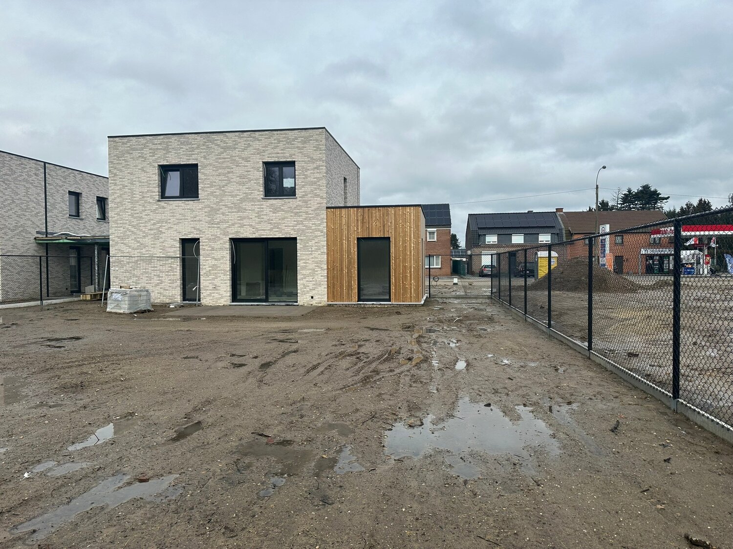 - Tuin: zuidgericht! wordt ingezaaid met graszode – de tuin wordt omheind met draad (vooraan 1 m hoogte, achter 1,80 m hoogte) - mogelijkheid om extra achter gelegen grond bij te kopen.