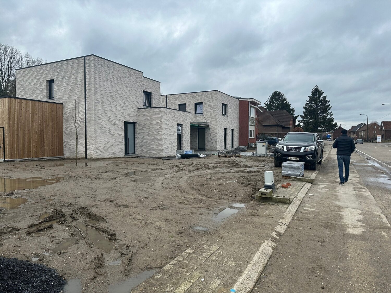 - Carport : (3 m x 6 m = 18 m²) – water doorlatende betonklinkers - ook de oprit en het pad naar de voordeur worden aangelegd in waterdoorlatende betonklinkers – naast de woning.