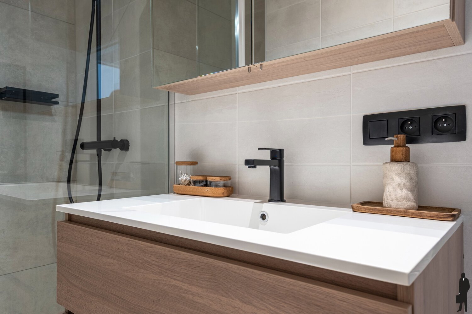 Via de nachthal bereikt u het gastentoilet, de badkamer met inloopdouche en wastafel, evenals 2 ruime slaapkamers, waarvan één omgevormd naar dressing. De afwerking van dit appartement is uitstekend en beschikt over een ventilatiesysteem D en vloerverwarming.