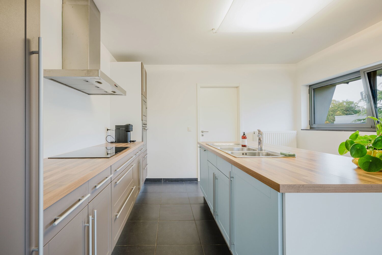 Bij het betreden van dit instapklare duplexappartement valt meteen de royale bewoonbare oppervlakte van maar liefst 150 m² op. De grote, open leefruimte geniet van natuurlijk licht dankzij de brede raampartijen met een open zicht. Vanuit de leefruimte geniet je directe toegang tot het ruime terras van 20 m². De open, geïnstalleerde keuken vormt één geheel met de leefruimte. Aansluitend bevindt zich een praktische berging.