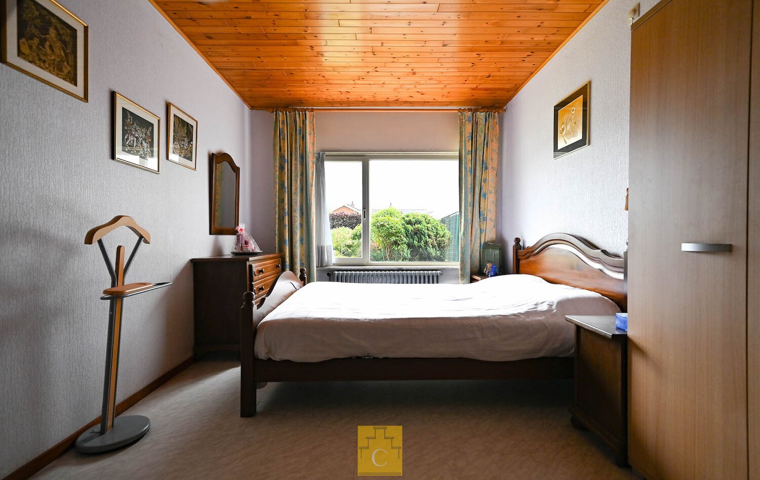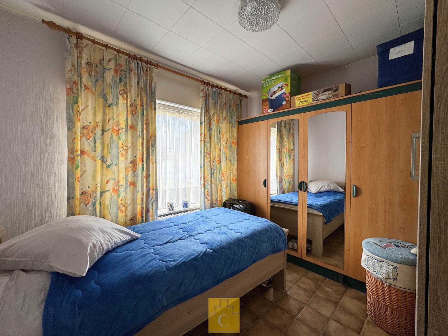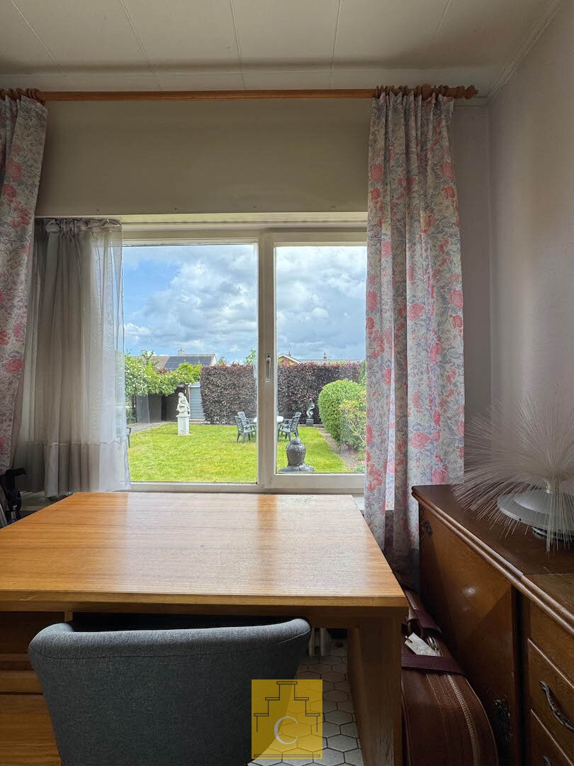 Gelegen op een rustige, maar uiterst centrale locatie op een boogscheut van het centrum van Loppem, vindt u deze degelijk gebouwde driegevelbungalow met inpandige garage en tuin. De woning werd gebouwd in 1970 en werd steeds goed onderhouden. Dankzij haar functionele indeling en mooie woonoppervlakte (circa 140 m2) biedt deze woning heel wat potentieel naar restyling toe. De indeling is als volgt : inkomhal met vestiaire, ruime en uiterst gezellige living in L (met inbouwcassette), keuken met aanrecht, kastjes en enkele toestellen en voldoende ruimte om te ontbijten, nachtgang, 2 mooie slaapkamers en een extra kamer die dienst kan doen als bureau of kinderkamer. De badkamer beschikt over zowel een ligbad als een douche. Apart toilet. Inpandige garage met hoek voor de wasfaciliteiten. Er is oprit voor de garage én een lange oprit naast de woning. Voortuin met haag, achtertuin met tuinberging. CV gas. Niet gelegen in een risicozone voor overstromingen. G-score : A. P-score : B.