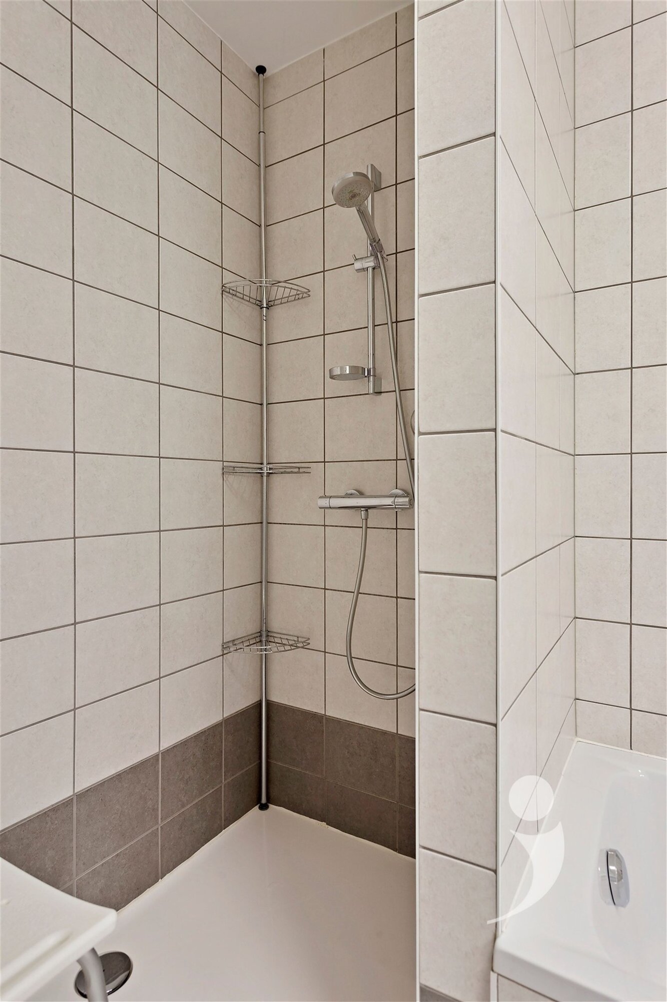 Het appartement is voorzien van een apart toilet, alsook een aparte berging met plaats en aansluiting voor een wasmachine en/of droogkast.
