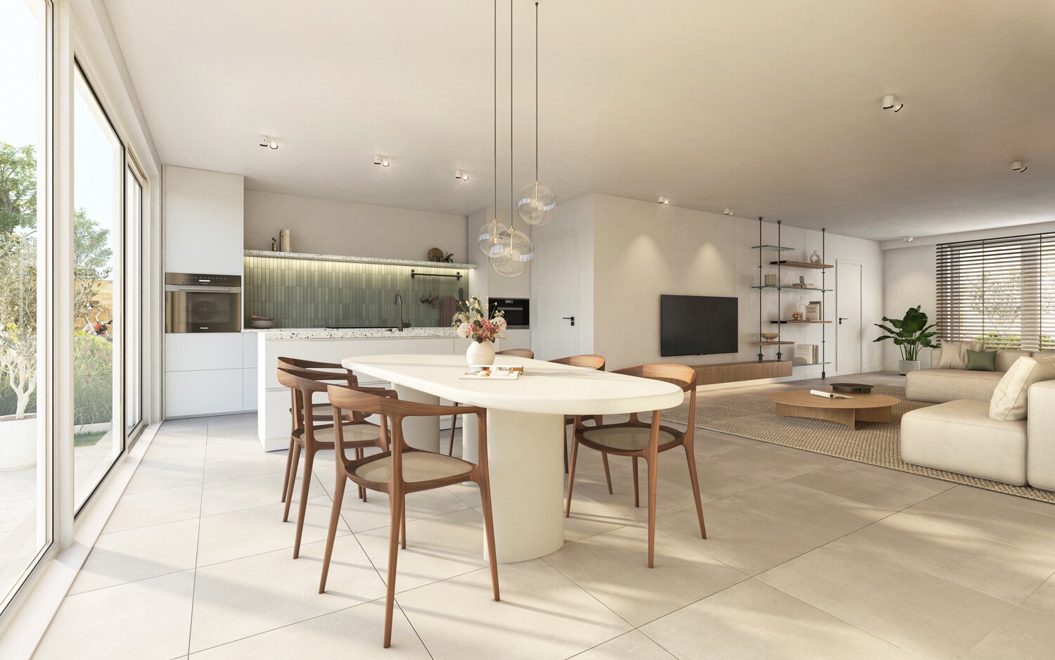 De sleutel-op-de-deur woningen van Begijnhof genieten een hoogwaardige afwerking en laag energiepeil. Zo is gekozen voor een warmtepomp in combinatie met vloerverwarming, zonnepanelen en driedubbele beglazing.