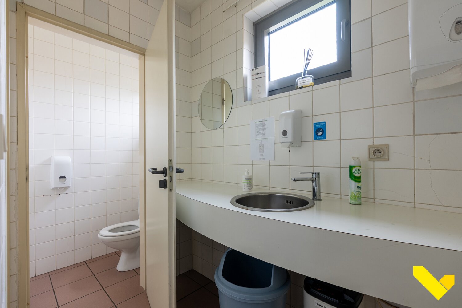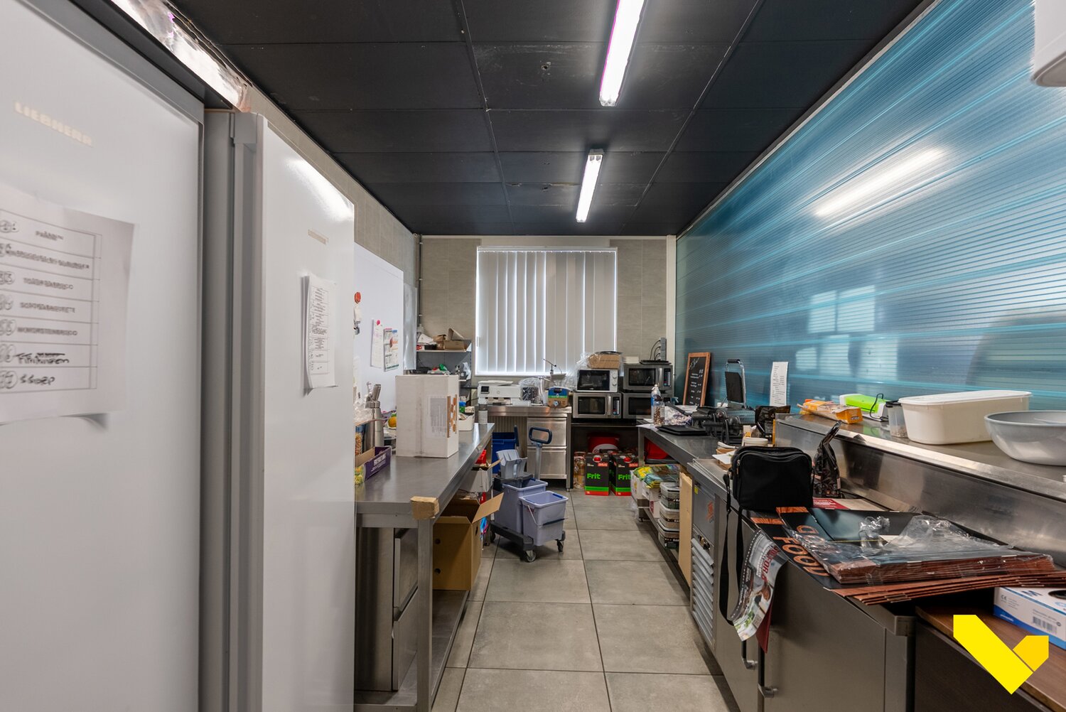 Op vlak van oppervlakte hebben we hier 180m² beschikbaar, met vooraan een ruime verbruikersruimte, tussenin een afsluitbare werkruimte en achteraan mogelijkheden voor het plaatsen van koeling en grote toestellen. Naastliggende een volledig geïnstalleerde keuken en achteraan sanitaire voorzieningen voor dames en heren.