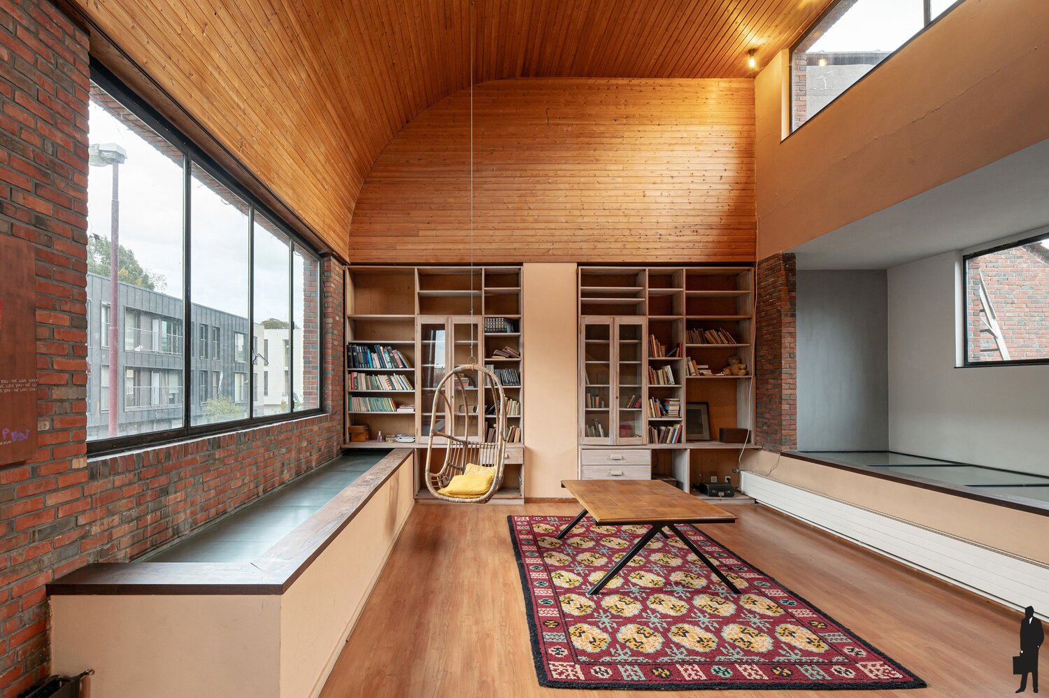 - Een ruime en gezellige leefruimte met verlaagde zithoek met open haard.
