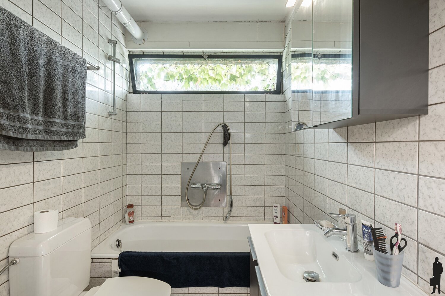 - Een badkamer voorzien van ligbad, toilet en wastafel.