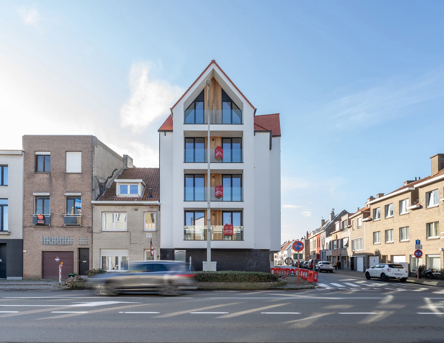 Residentie Raphael, gelegen aan de Kerkstraat 247 in Blankenberge, geniet van een vlotte bereikbaarheid nabij het centrum, het station en de belangrijkste invalswegen. Op wandelafstand van het strand en de polders woont u hier op een plek waar rust, comfort en levenskwaliteit samenkomen. De gekaleide gevel in combinatie met zwarte aluminium ramen geeft het gebouw een moderne en tijdloze uitstraling.