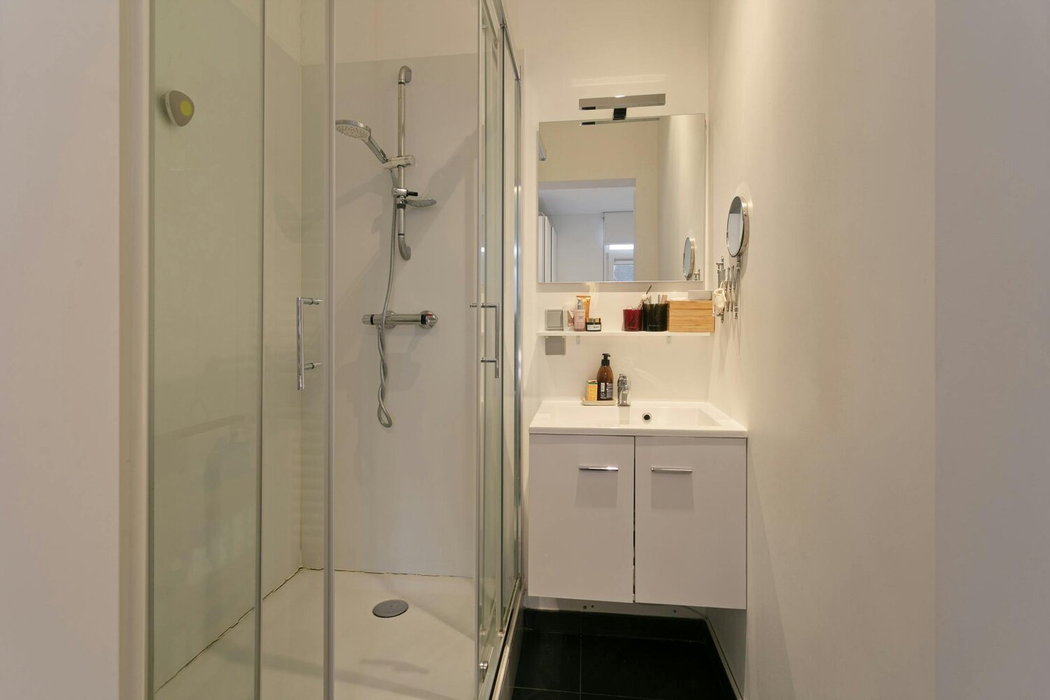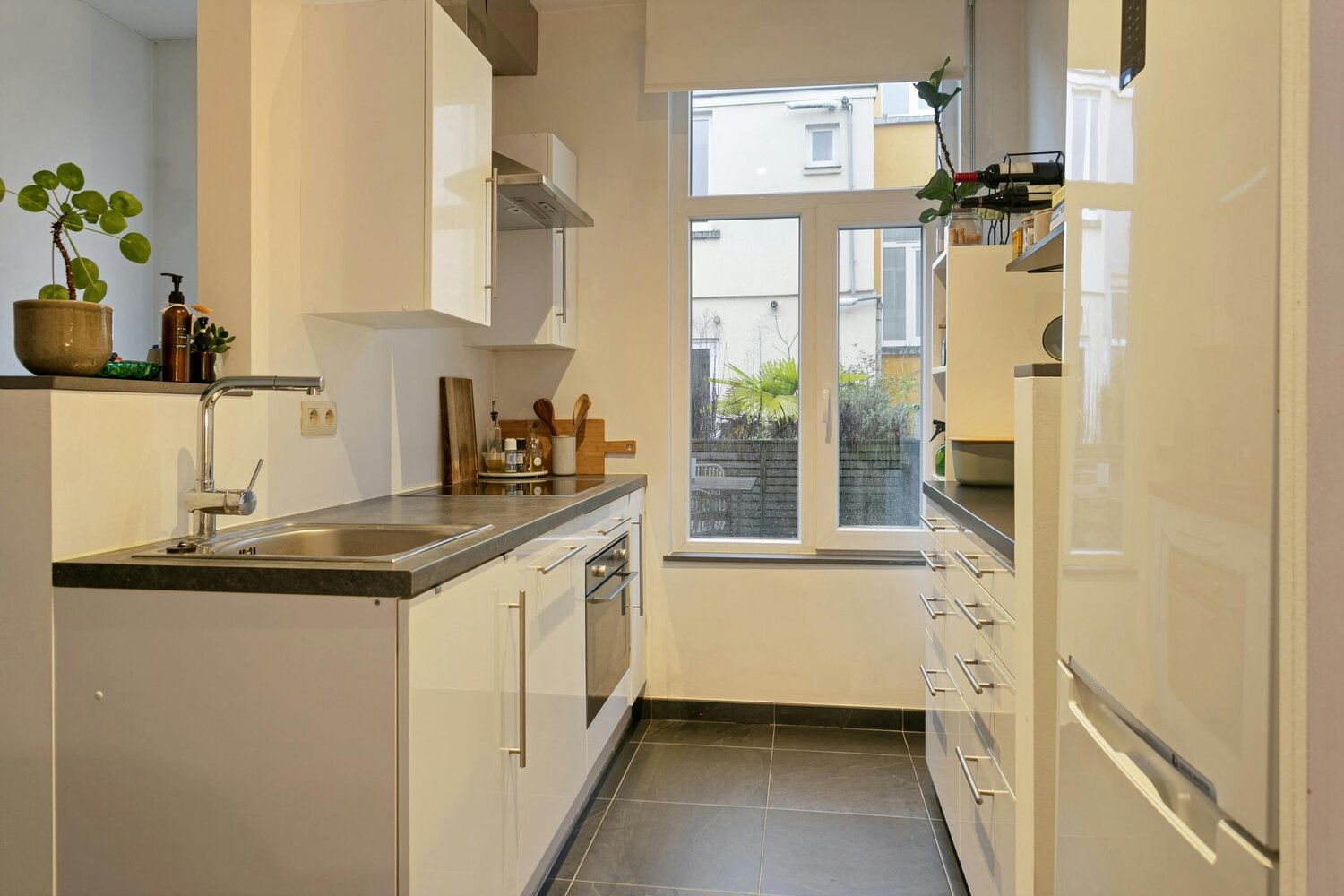 Het appartement van ca 70 m² te koop ligt aan de rustige achterzijde van een kleinschalig gebouw zonder lift. Het appartement kan genieten van een aangename lichtinval dankzij de raampartijen voor en achter. De keuken is voorzien van kookvuur, vaatwasser, koelkast en dampkap. De aparte slaapkamer is aangenaam ruim en voorzien van airconditioning. De moderne badkamer is uitgerust met douche en lavabo. Er is een privé terras dat uitgeeft op een gemeenschappelijk terras. Het privé terras is zuid georiënteerd.