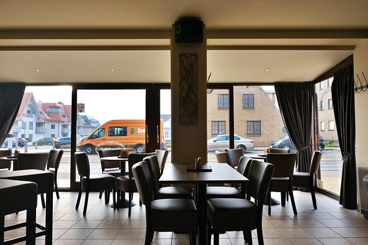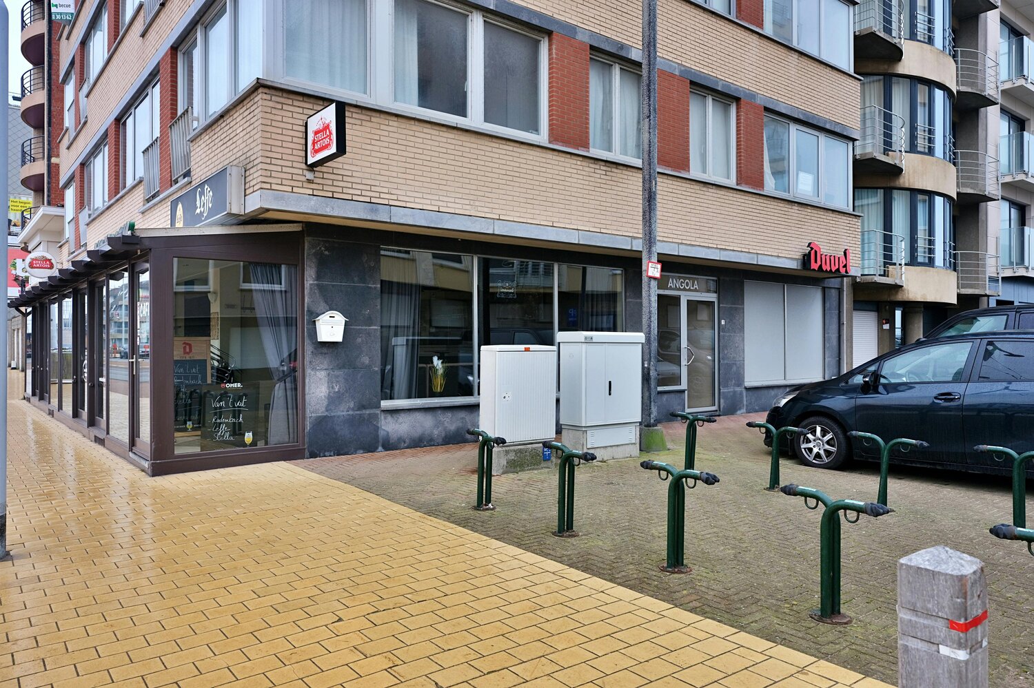 Deze commerciële ruimte is gelegen op de eerste lijn om de hoek van de zeedijk en geniet van een bijzonder goede ligging nabij het strand. Dit pand ,met een capaciteit voor 80 personen, beschikt over een brede open gevel. Achteraan bevinden de toiletten en een berging/studio. Toegang zowel via de zaak aan de straatkant als een achteringang van het gebouw.