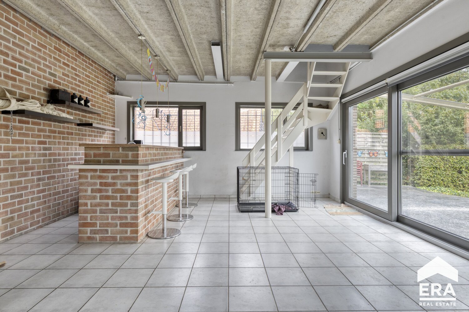 De gelijkvloerse verdieping is momenteel ingericht als werkplaats, atelier of tentoonstellingsruimte. Deze royale ruimte laat zich echter volledig aanpassen aan uw wensen: van inspirerende praktijk of creatieve studio tot een gezellige kangoeroewoonst. Hier bepaalt u zelf hoe u deze meters optimaal benut.