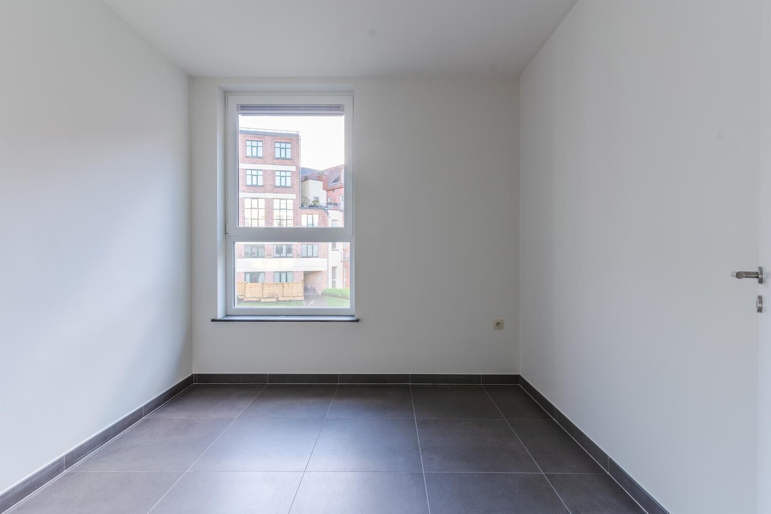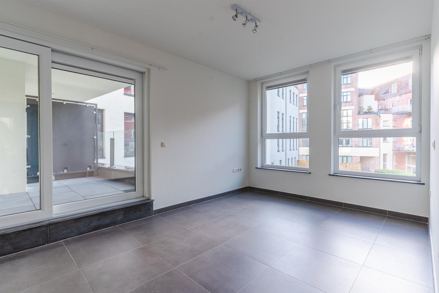 Het appartement is gelegen op de eerste verdieping. U komt binnen via de inkomhal en vervolgens heeft u toegang tot de woonkamer met open keuken. De keuken is volledig geïnstalleerd en voorzien van de gebruikelijke toestellen. Vanuit de woonkamer heeft u toegang tot het eerste terras via een groot schuifraam. De badkamer is voorzien van een toilet, inloop regendouche en lavabo met badkamermeubel. Tot slot bevat het appartement nog 2 slaapkamers, waarvan 1 slaapkamer met afzonderlijke berging en aansluitend terras die een prachtig uitzicht heeft op de binnentuin.
