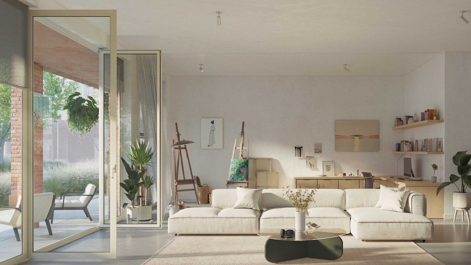 Uniek atelierappartement met uitzonderlijke plafondhoogte van 3,22 m, wat zorgt voor een indrukwekkend gevoel van ruimte en licht. Dit type appartement onderscheidt zich binnen het project door zijn flexibiliteit: u beschikt over een extra kamer die perfect kan ingericht worden als atelier, bureau of sportruimte.
