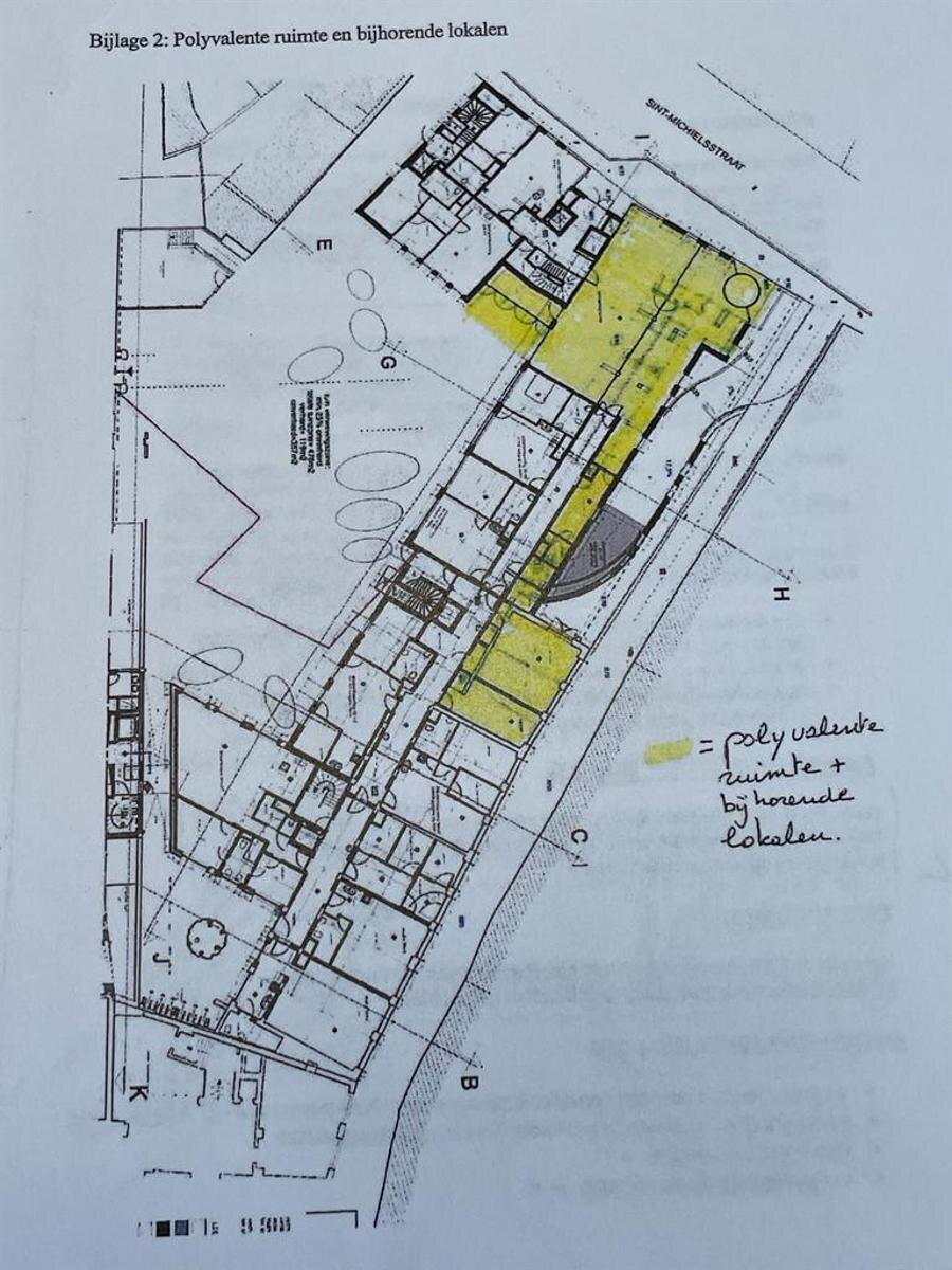 De handelsruimte maakt deel uit van de residentie "Collegehof" en is gelegen in de Sint Michielsstraat te Gent.