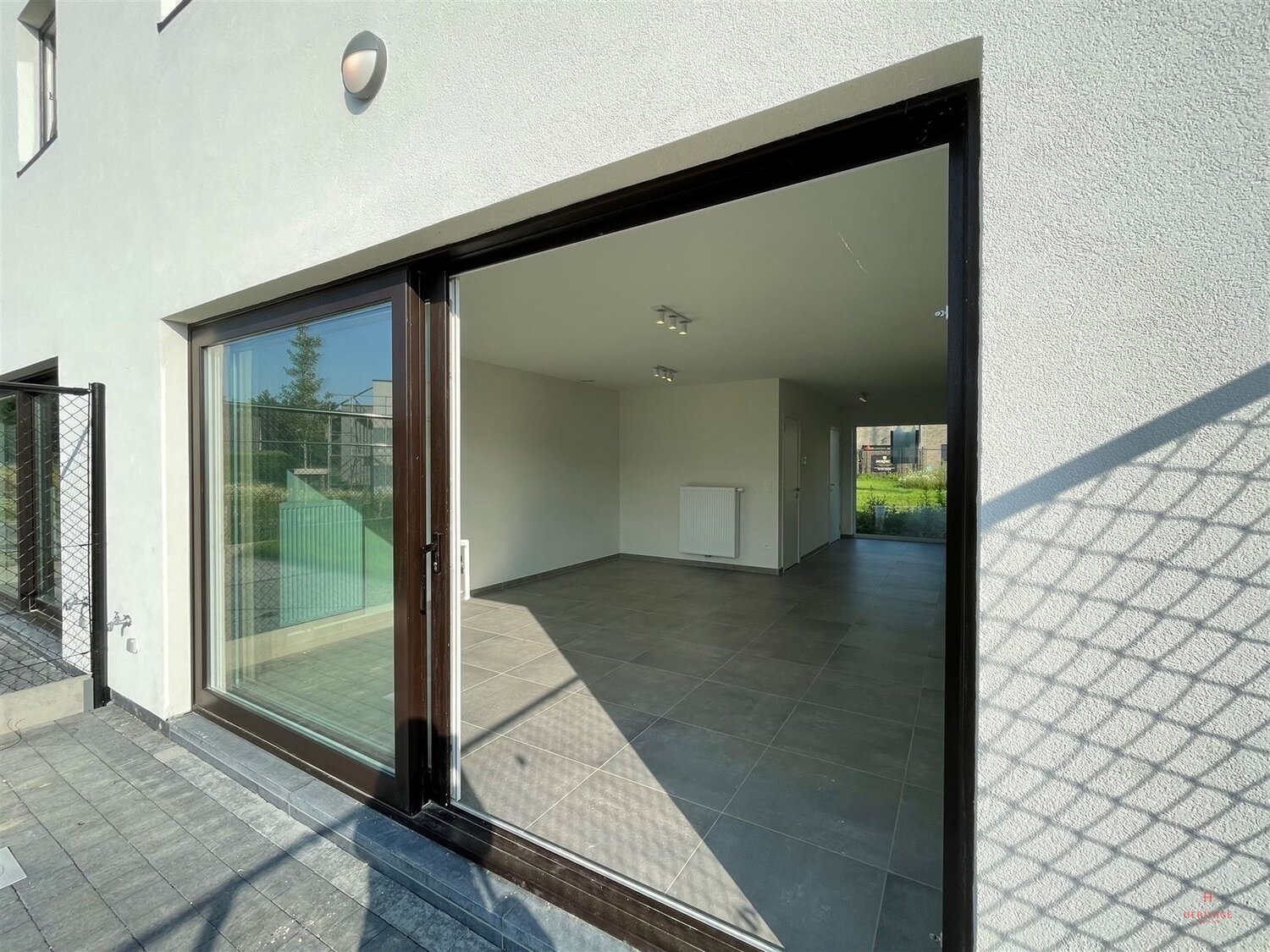 Gelijkvloers: Inkomhal met apart toilet - lichtrijke leefruimte met zicht op de tuin - open en volledig uitgeruste keuken - berging