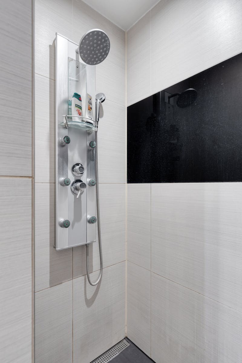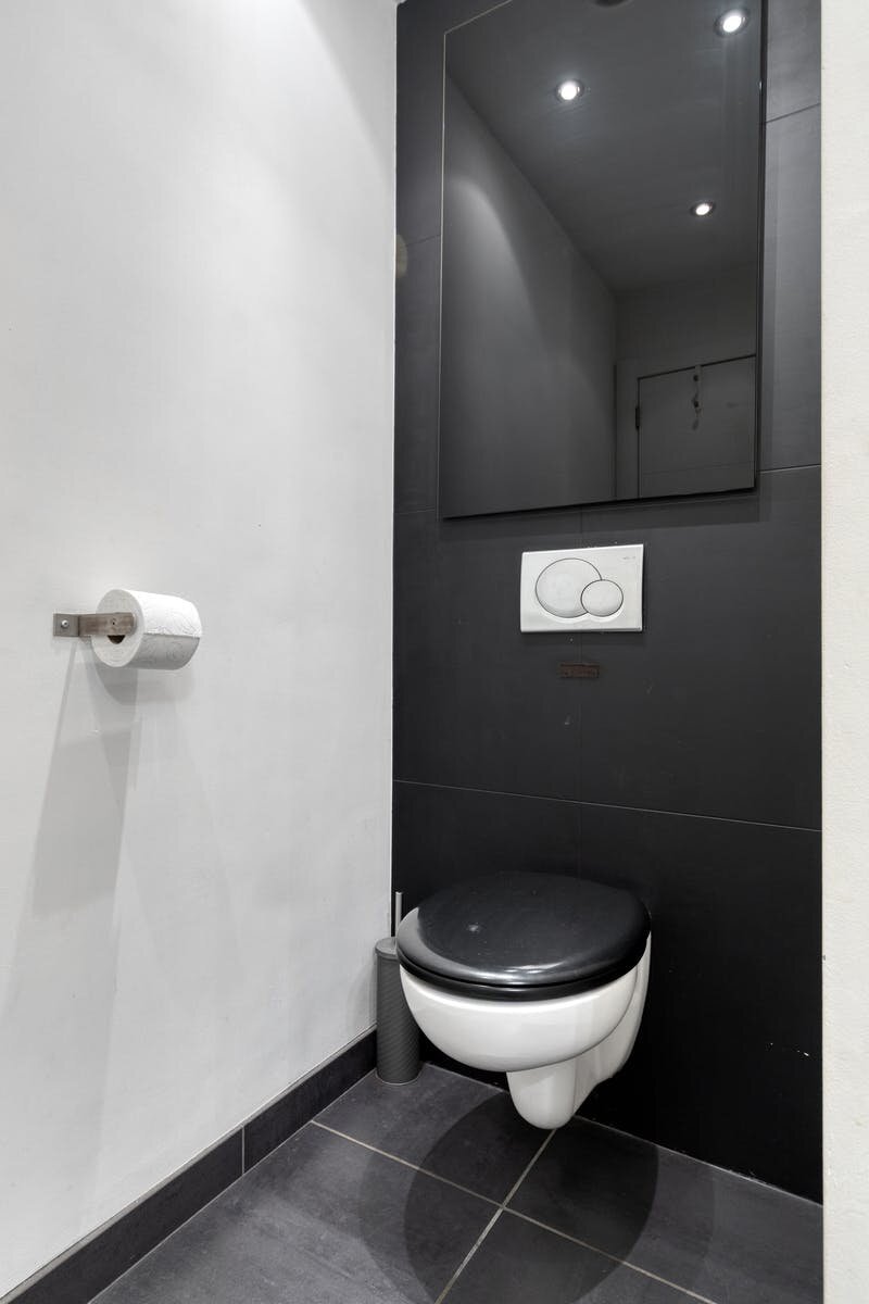- Badkamer met douche, enkele lavabo en toilet