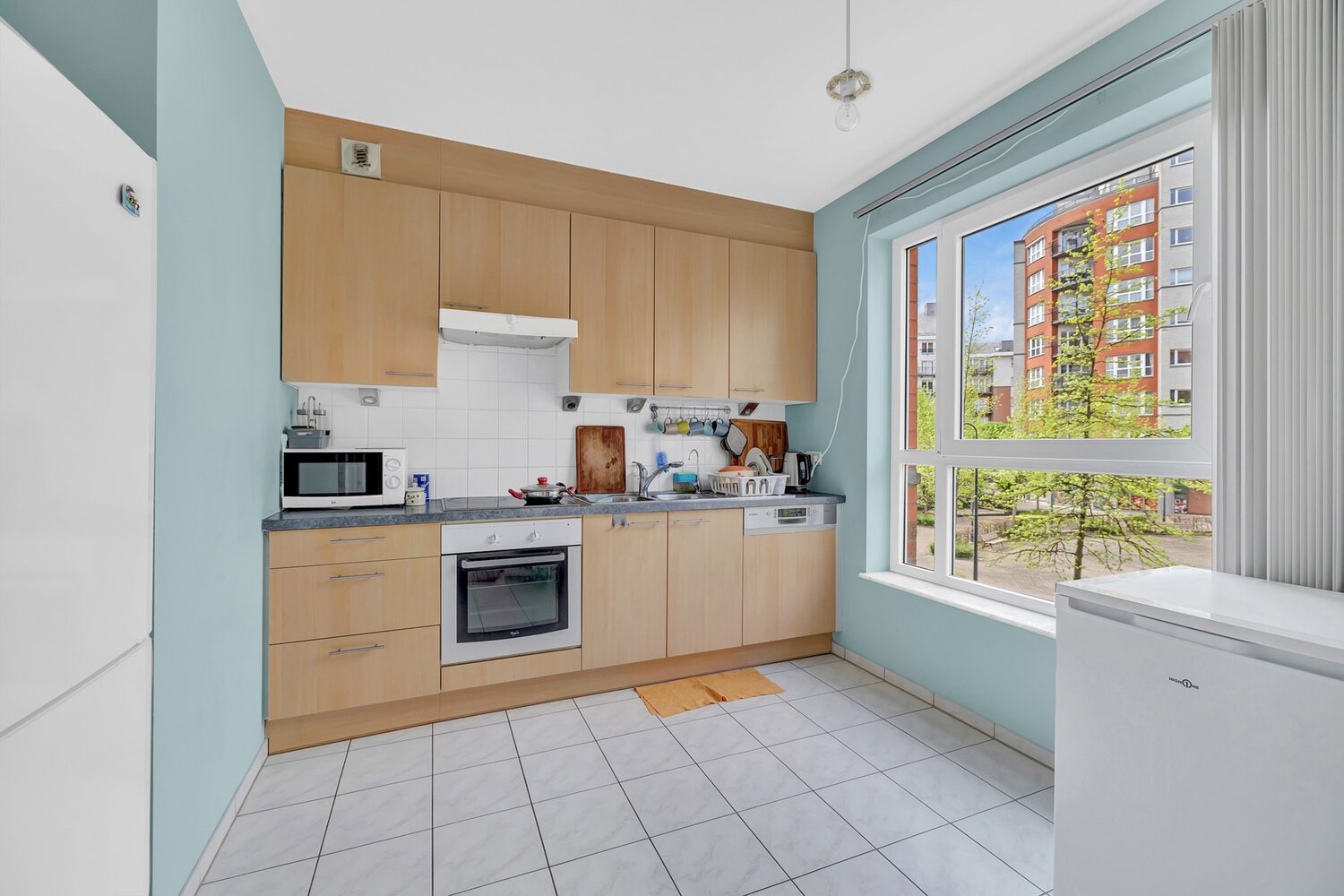 Pour plus d'informations ou visite, appelez le 053/59.49.34 - Appartement spacieux et lumineux dans le quartier "Les Jardins de Jette". L'appartement a une superficie de 110m² et comprend un hall d'entrée, living, une cuisine séparée, 2 chambres, une salle de bain et une terrasse. L'appartement comprend également une cave et une place de parking (à acheter pour 25,000€). L’appartement est actuellement loué à 1.250 € + 100 € de charges communes, ce qui offre un beau rendement locatif.