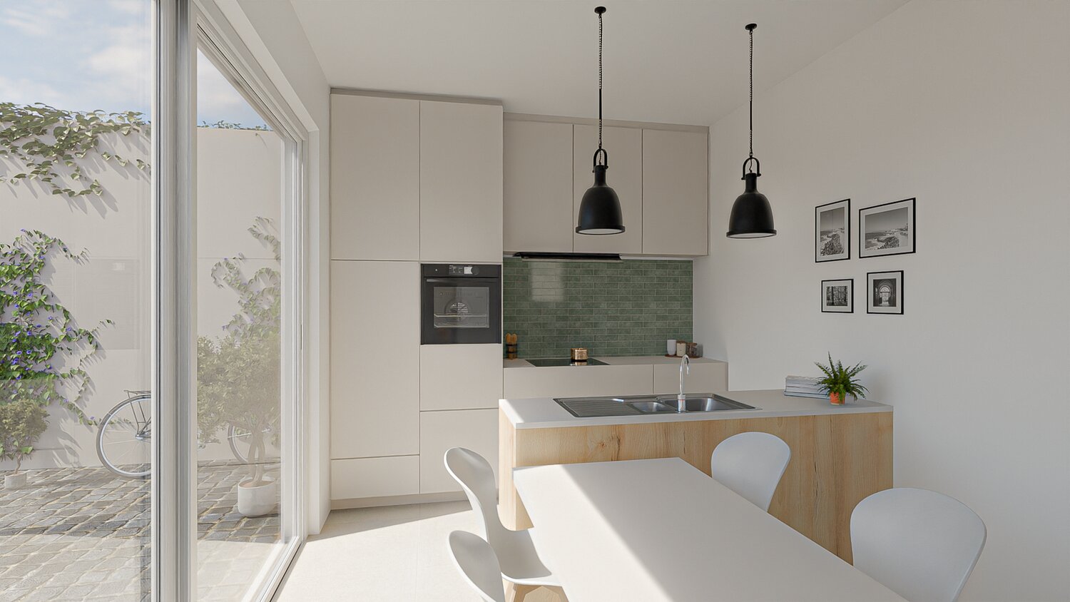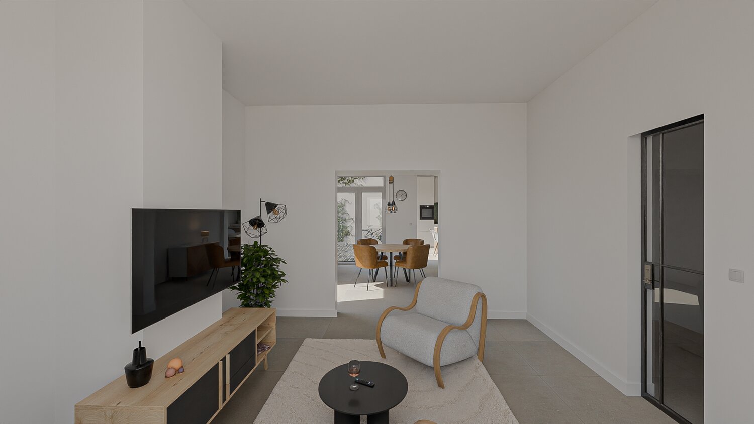 Deze instapklare woning biedt een moderne en comfortabele indeling. Op het gelijkvloers bevindt zich een lichtrijke leefruimte met een volledig uitgeruste, moderne open keuken. Aansluitend vindt u een praktische berging en een gastentoilet.
