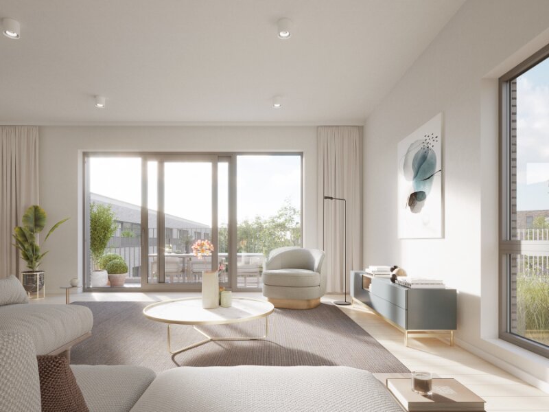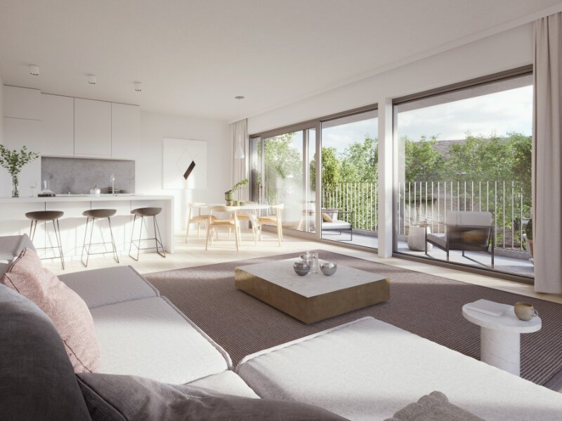 *INDELING: inkomhal met afzonderlijke wc met handenwasser, slaapkamer 1 (ca. 12m²), slaapkamer 2 (ca. 10m²). Technische berging met aansluiting voor wasmachine. De badkamer biedt de mogelijkheid tot het plaatsen van een ruime douche of ligbad en een dubbele wastafel. Er is ook een technische berging met aansluiting voor een wasmachine. De leefruimte (ca.32,5m²) beschikt over een open keuken en biedt voldoende ruimte tot het creëren van een gezellige zit en eethoek. De grote (schuif)raampartij zorgt voor veel lichtinval en geeft toegang tot het terras (ca.10.5m²) Hier geniet u van de avondzon en het zicht op de binnentuin. Parking en berging zijn gelegen in de ondergrondse kelder (niet in de prijs inbegrepen).