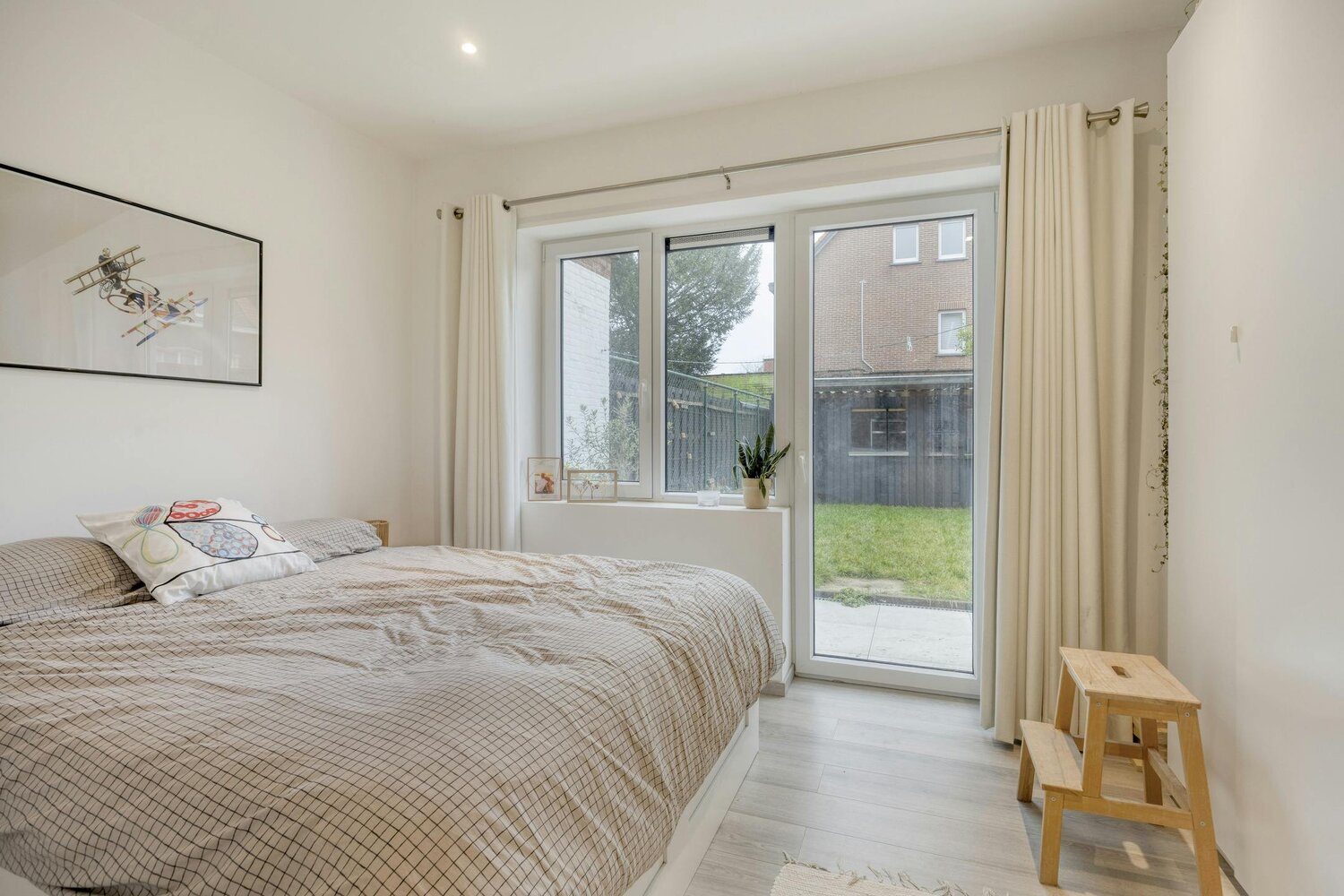 Via de grootste slaapkamer stapt u direct op het gloednieuwe terras en de zonnige, zuidgerichte tuin in. Extra troef? De ruime garage is rechtstreeks via de tuin bereikbaar – ideaal voor fietsen of boodschappen!