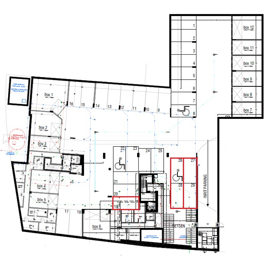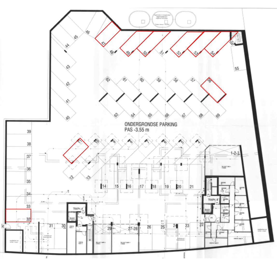 Autostaanplaatsen in een recent gebouw. De staanplaatsen worden verkocht onder 21% BTW.