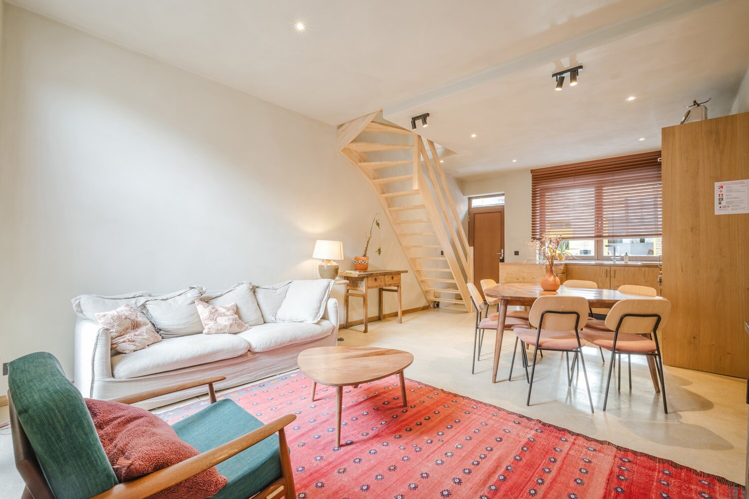 De woning werd in 2021 volledig gestript en duurzaam gerenoveerd met ecologische kwaliteitsmaterialen zoals massief hout, leempleister, mortex en hennepisolatie. Dit resulteert in een gezond, aangenaam en energiezuinig binnenklimaat.