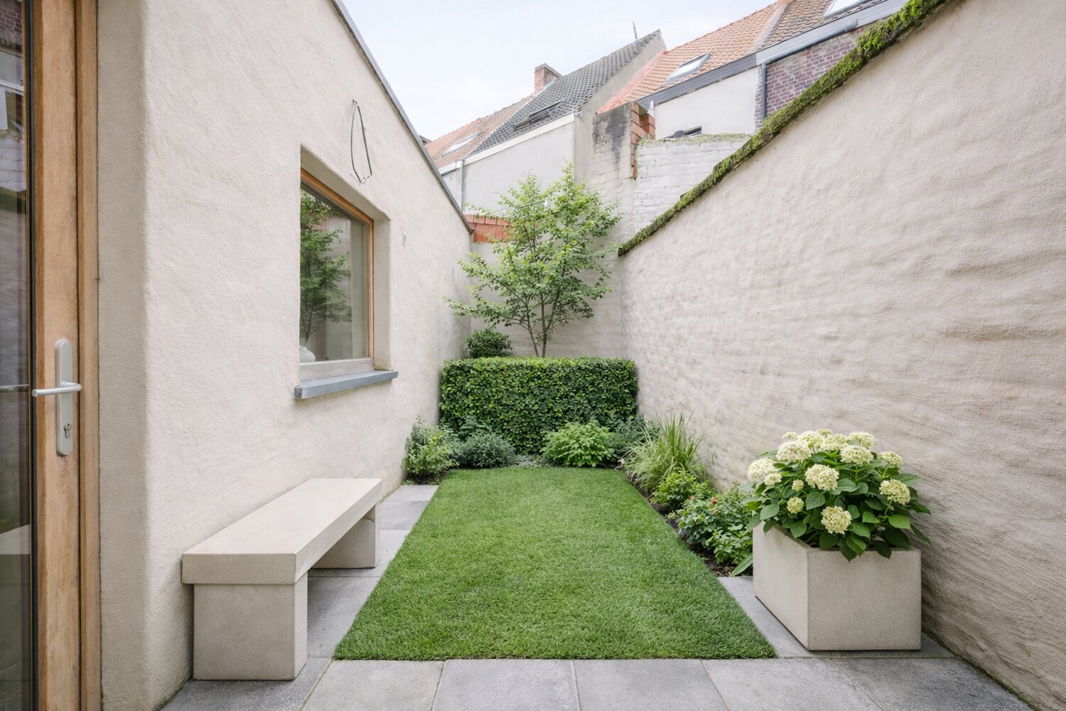 Achteraan de woning is er een charmant binnentuintje, ideaal om in alle rust te ontspannen.