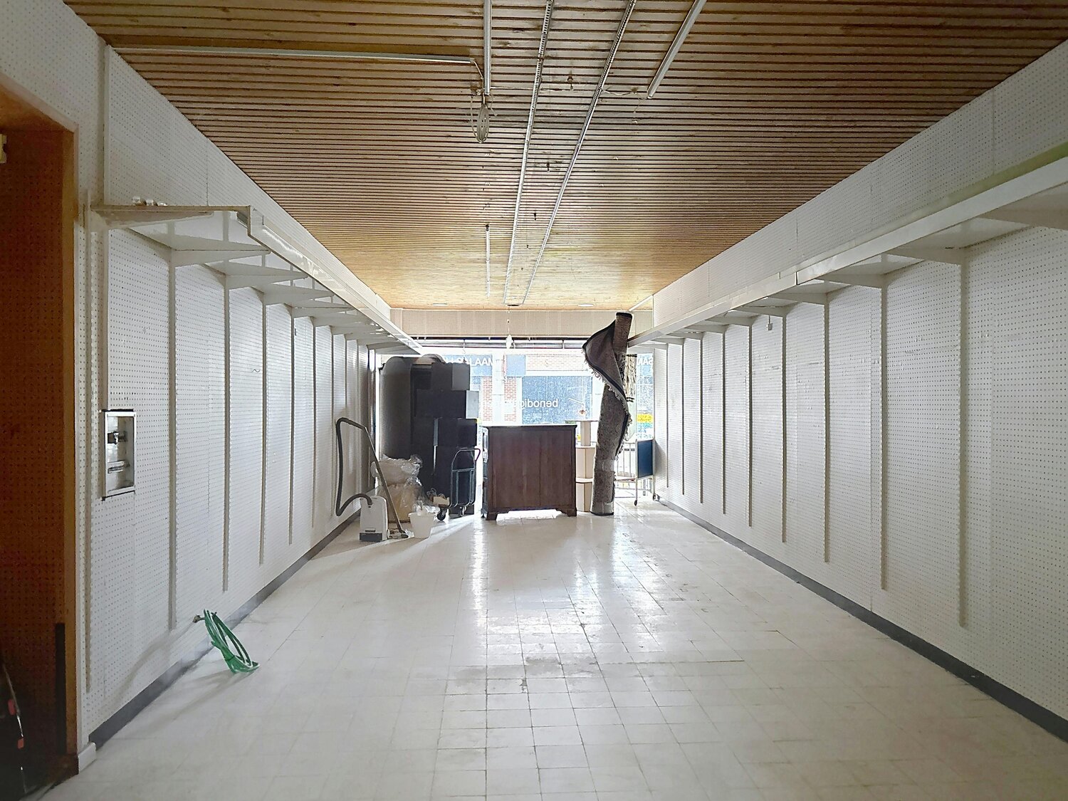 Het gelijkvloers is momenteel ingedeeld als twee aparte handelsruimten, maar kan eenvoudig worden samengevoegd tot één ruime commerciële entiteit. Achter de winkelruimte bevindt zich een functionele kantoorruimte met overdekte koer.