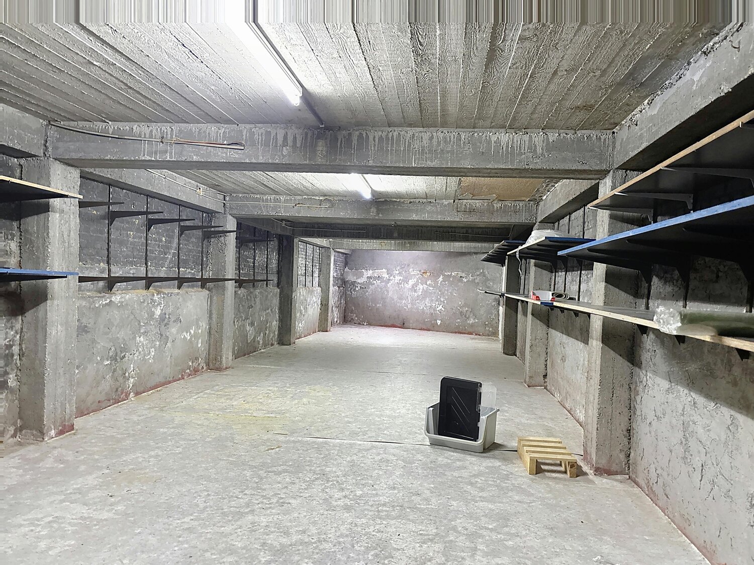 Achteraan vinden we een ruime kelder met daarbovenop een magazijn, en bureel.