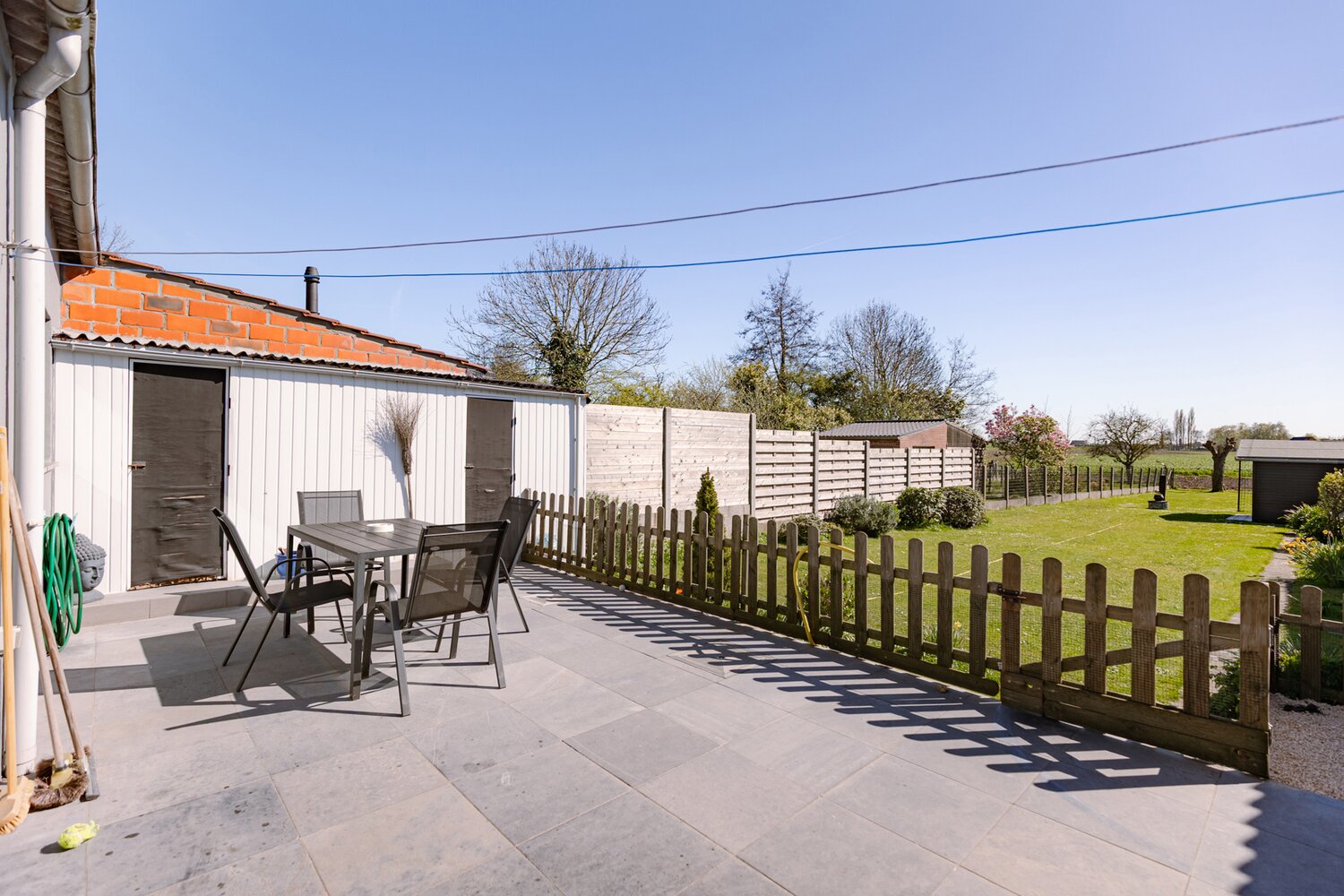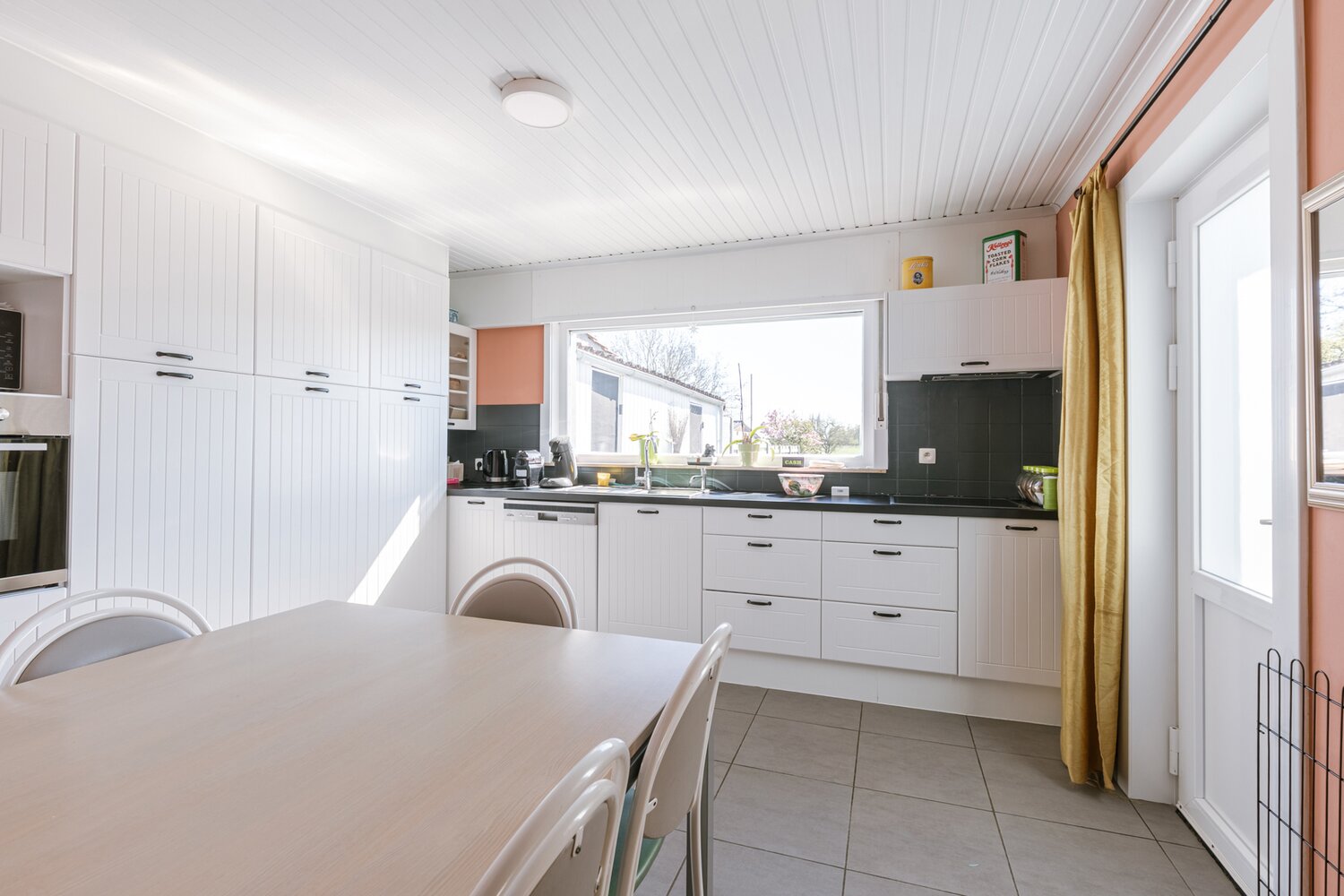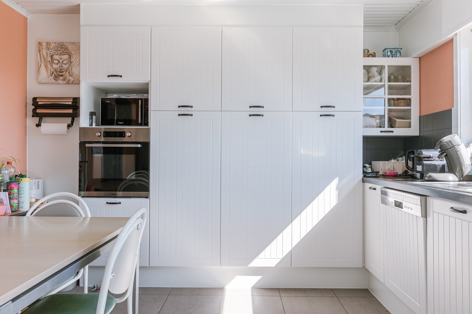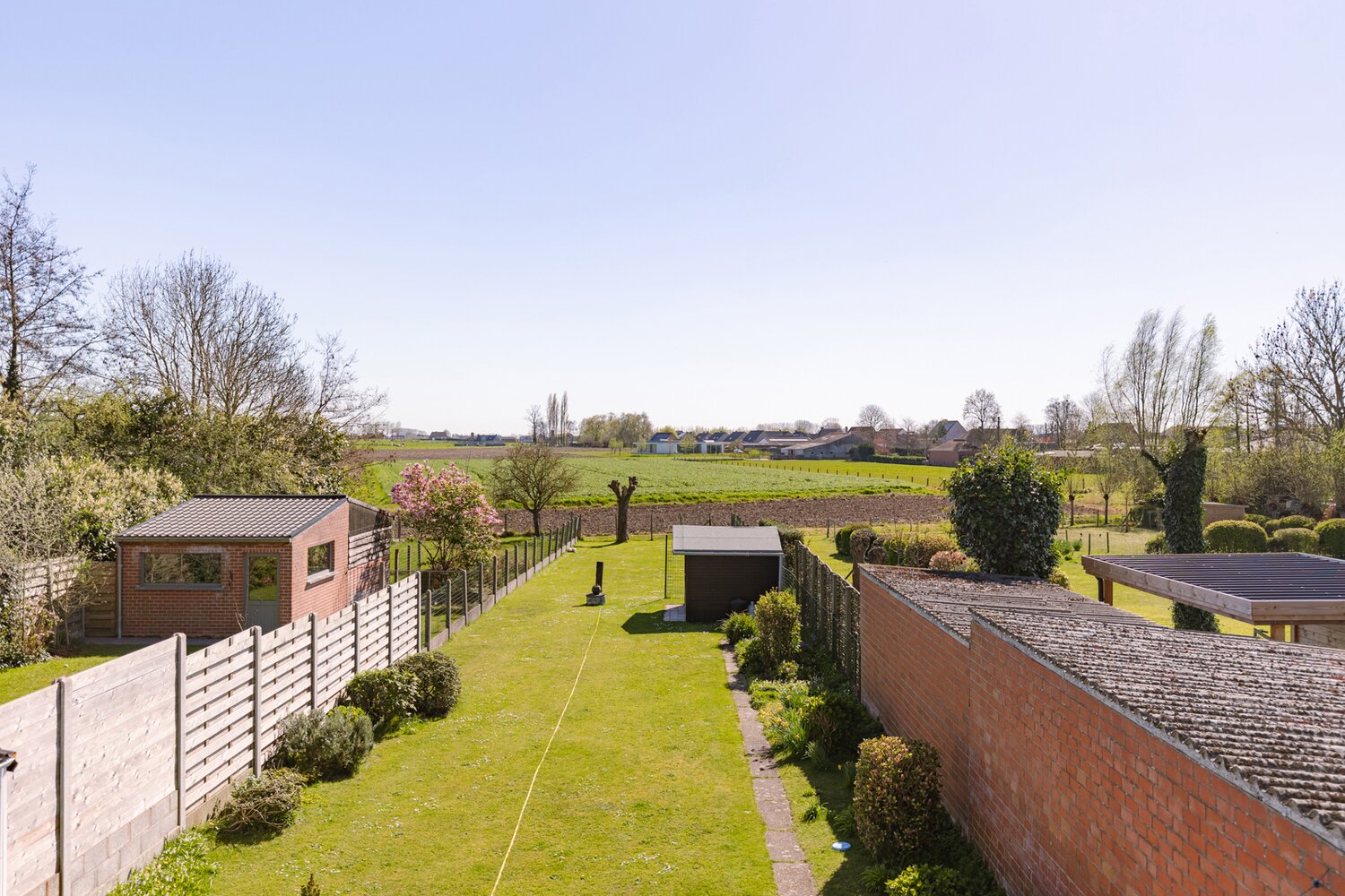 Bij binnenkomst wordt je onthaald in de inkomhal die meteen toegang biedt tot de ruime woonkamer, dankzij de vele lichtpartijen wordt de ruimte voorzien van natuurlijk zonlicht. Doorlopend krijg je toegang tot de vernieuwde keuken, voorzien van een vaatwasser, oven én voldoende opbergruimte. Via de keuken krijg je toegang tot de rustige en aangename tuin met landelijke vergezichten.